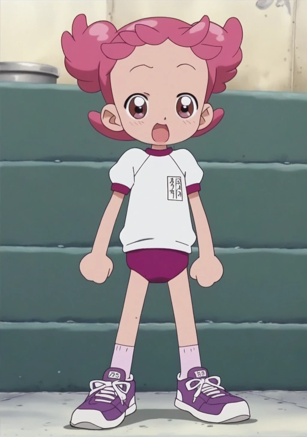 Gym Outfit: pop harukaze, gym uniform, sneakers, buruma, purple sneakers, pink hair,