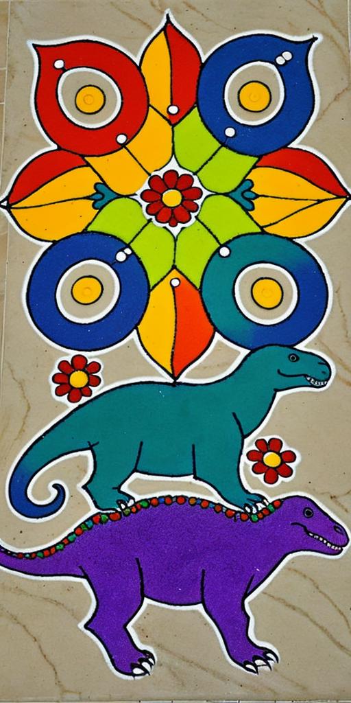 Use keywords - Subject design, rangoli style, 2d ,colour, flat, minimalism
