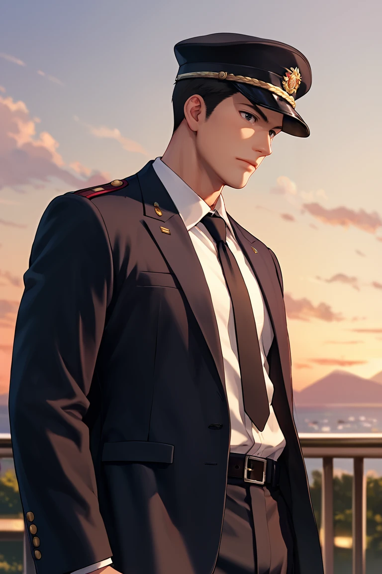 Japan Self-Defense Force dress uniform, white shirt, black necktie, black jacket, closed jacket, peaked cap