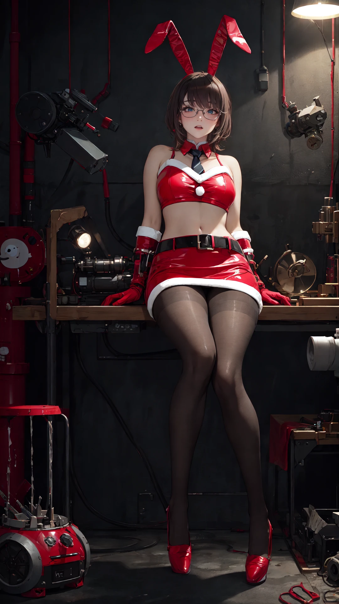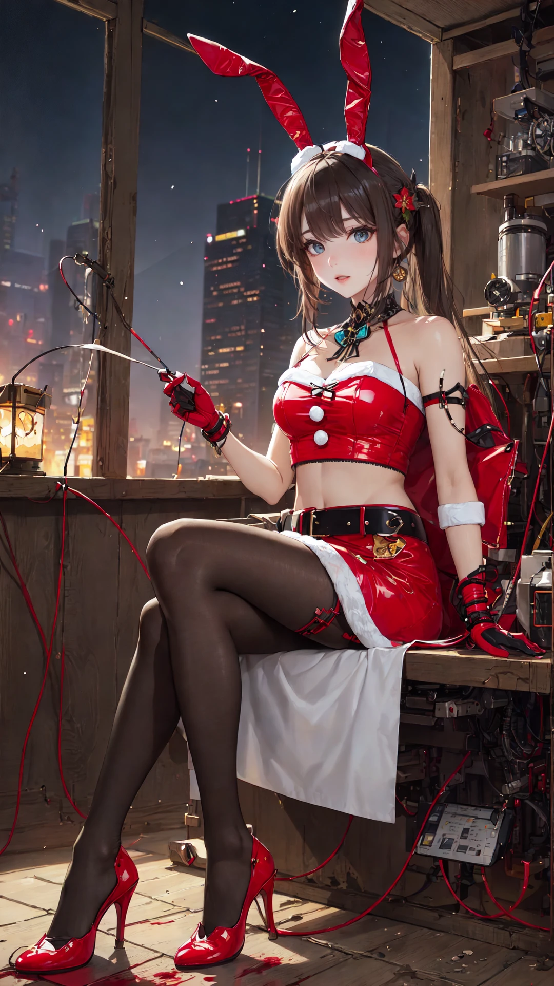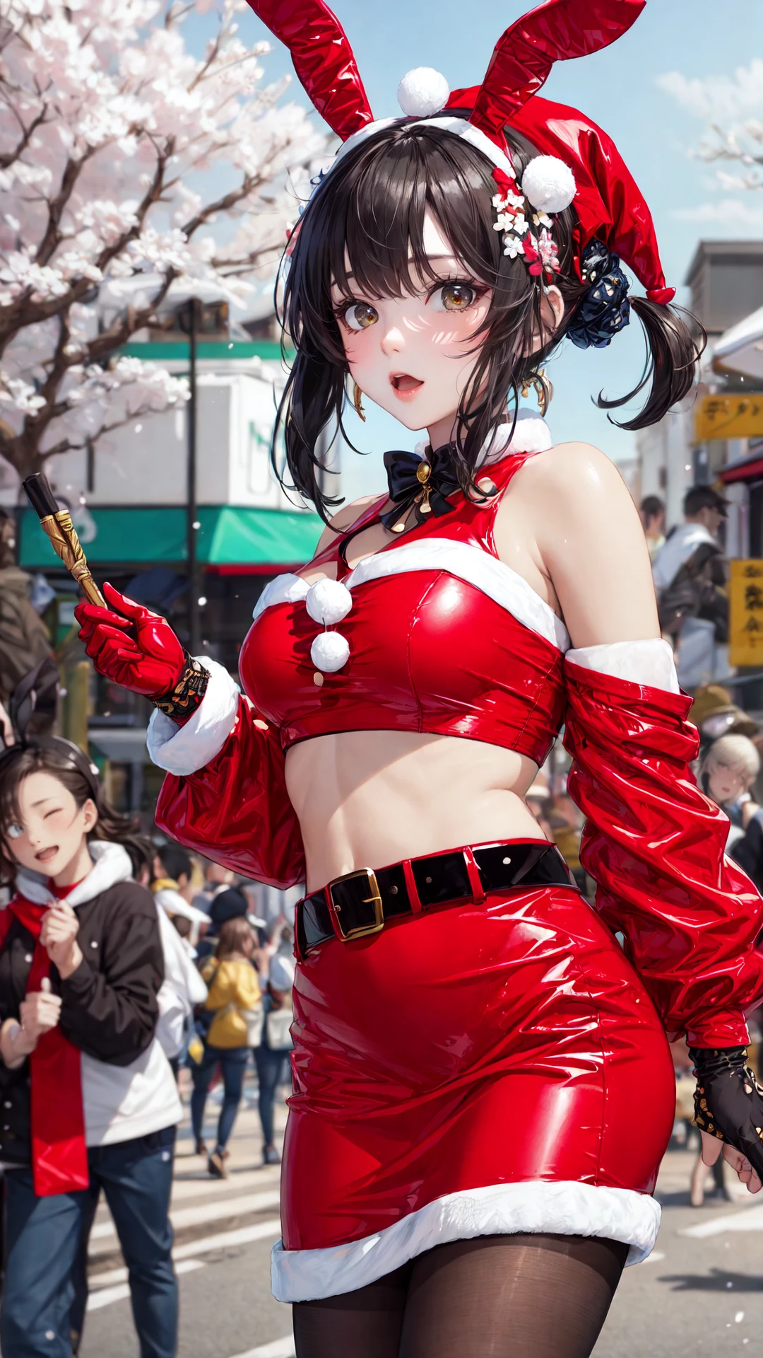 4. The trigger words are: tutututu, bare shoulders, belt, crop top, red pencil skirt, miniskirt,christmas_dress,fur trim, red fingerless gloves, midriff, santa costume, rabbit tail, rabbit ears, fake animal ears,,