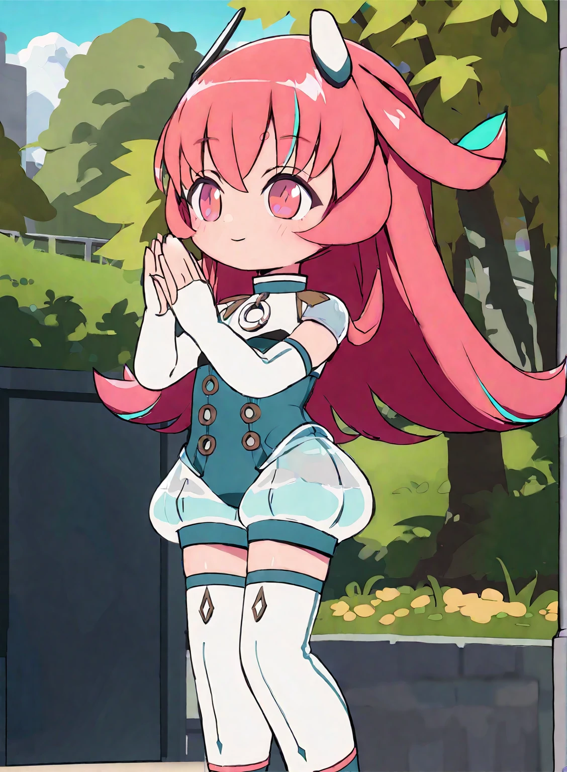触发词:chibi,pink hair,pink eyes,thighhighs