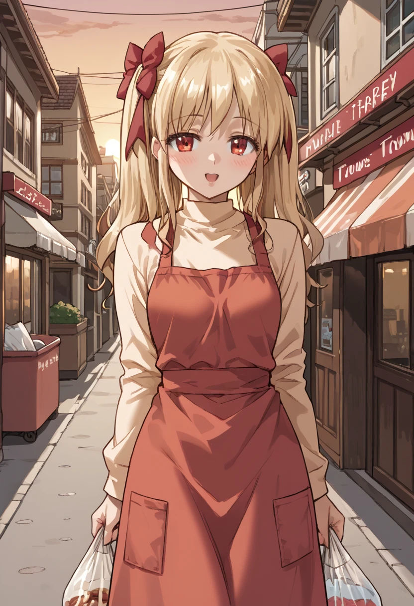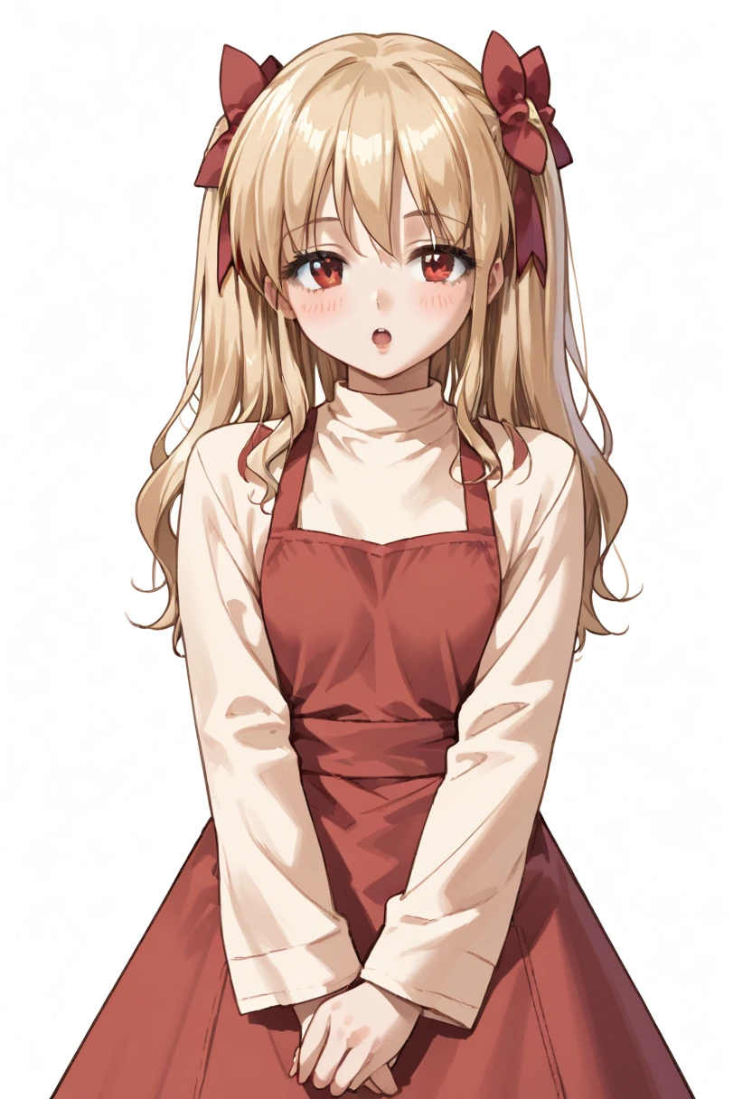 o_mayu, blonde hair, red eyes, hair bow, twintails