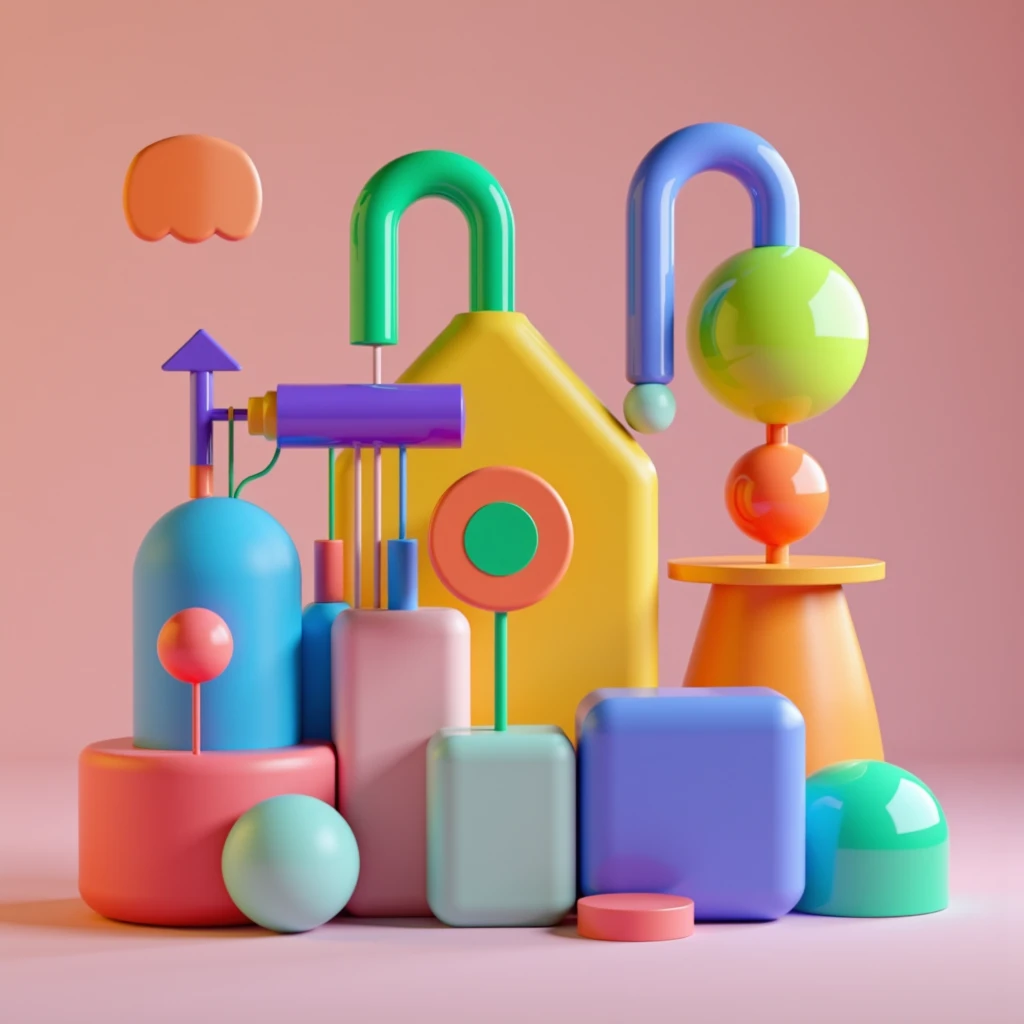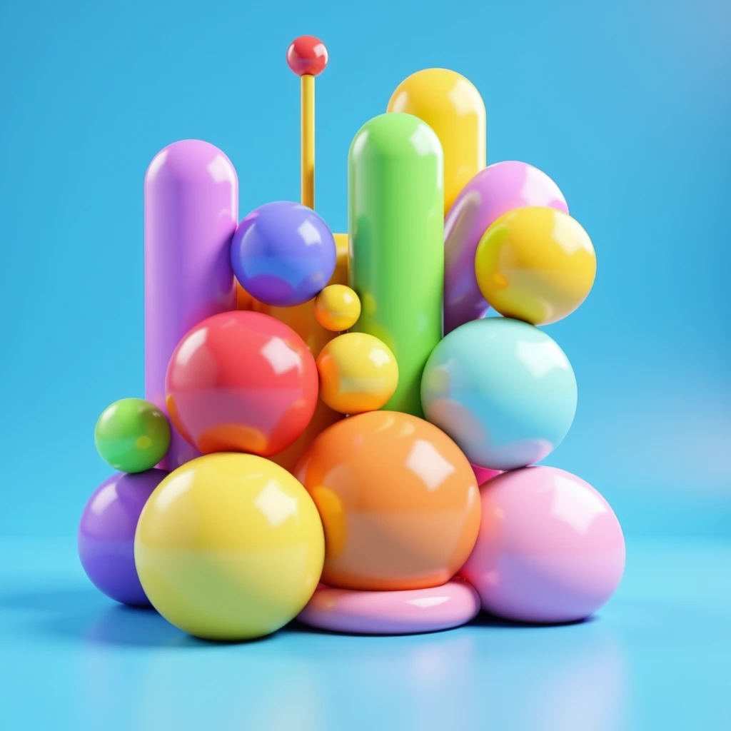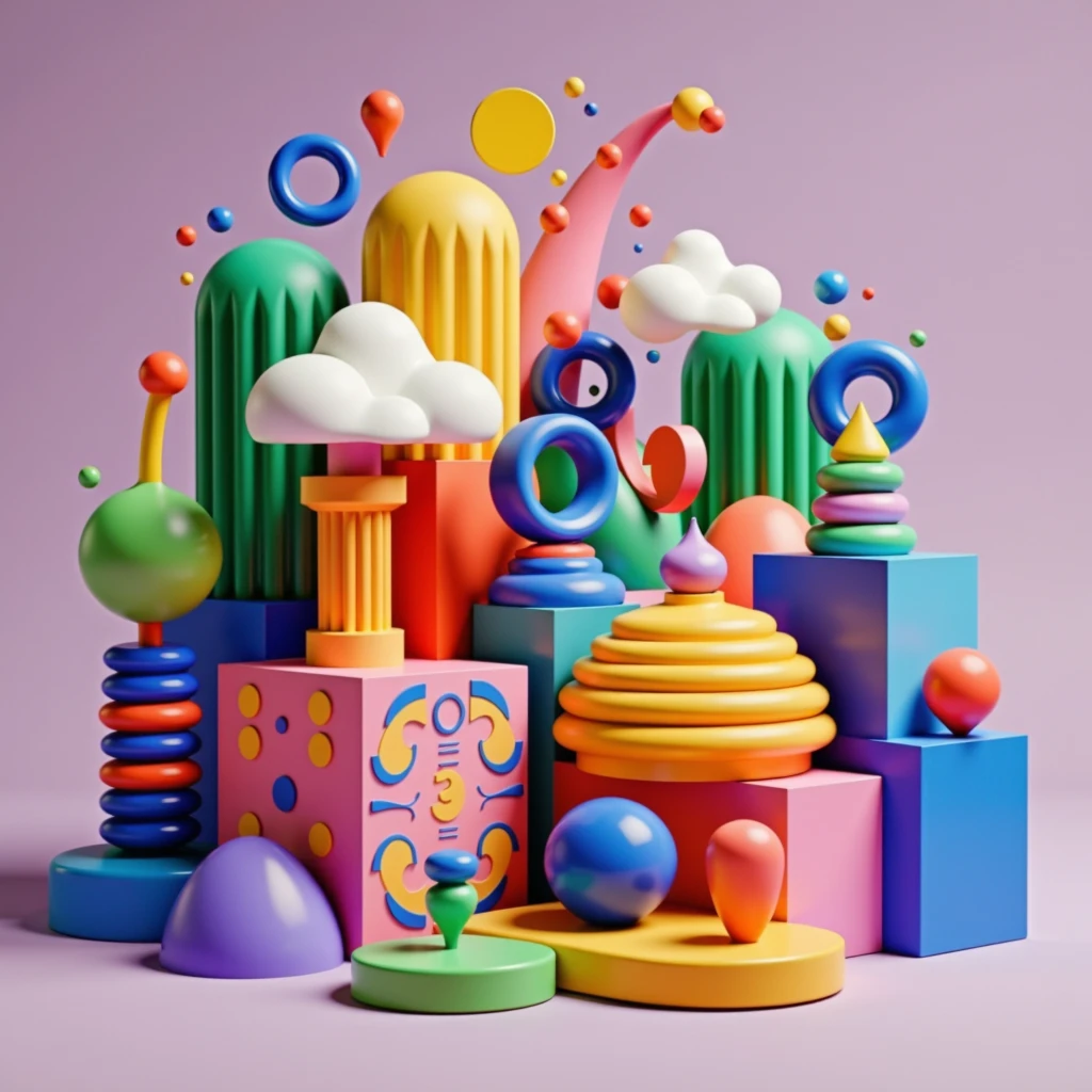 A contemporary 3D render take on the Memphis design style. Good for abstract 3D renders with soft edges and other almost claymation style scenes.