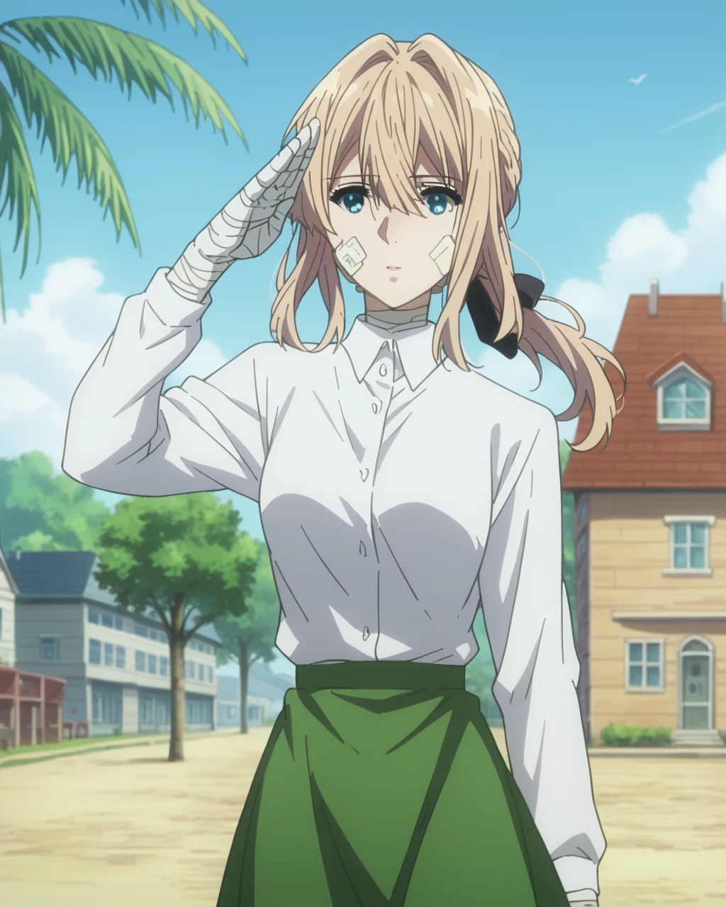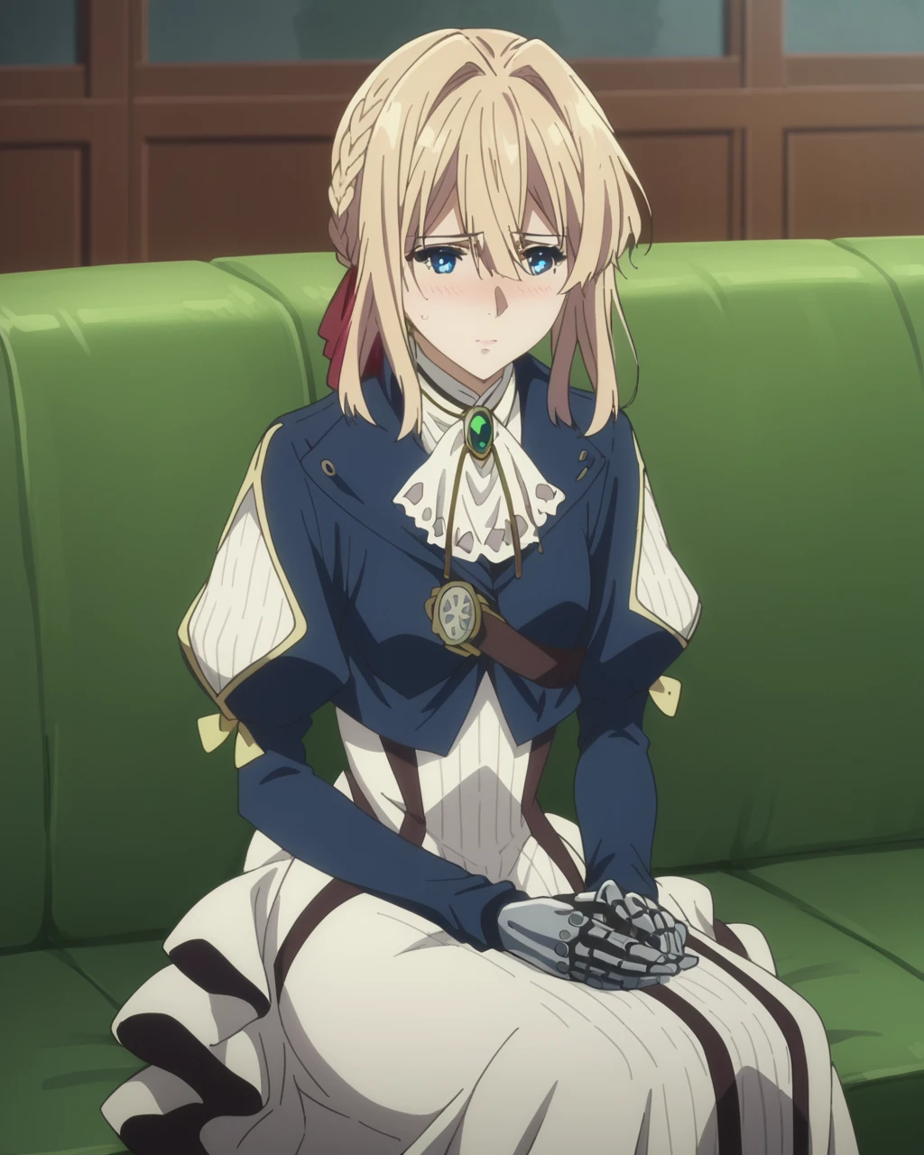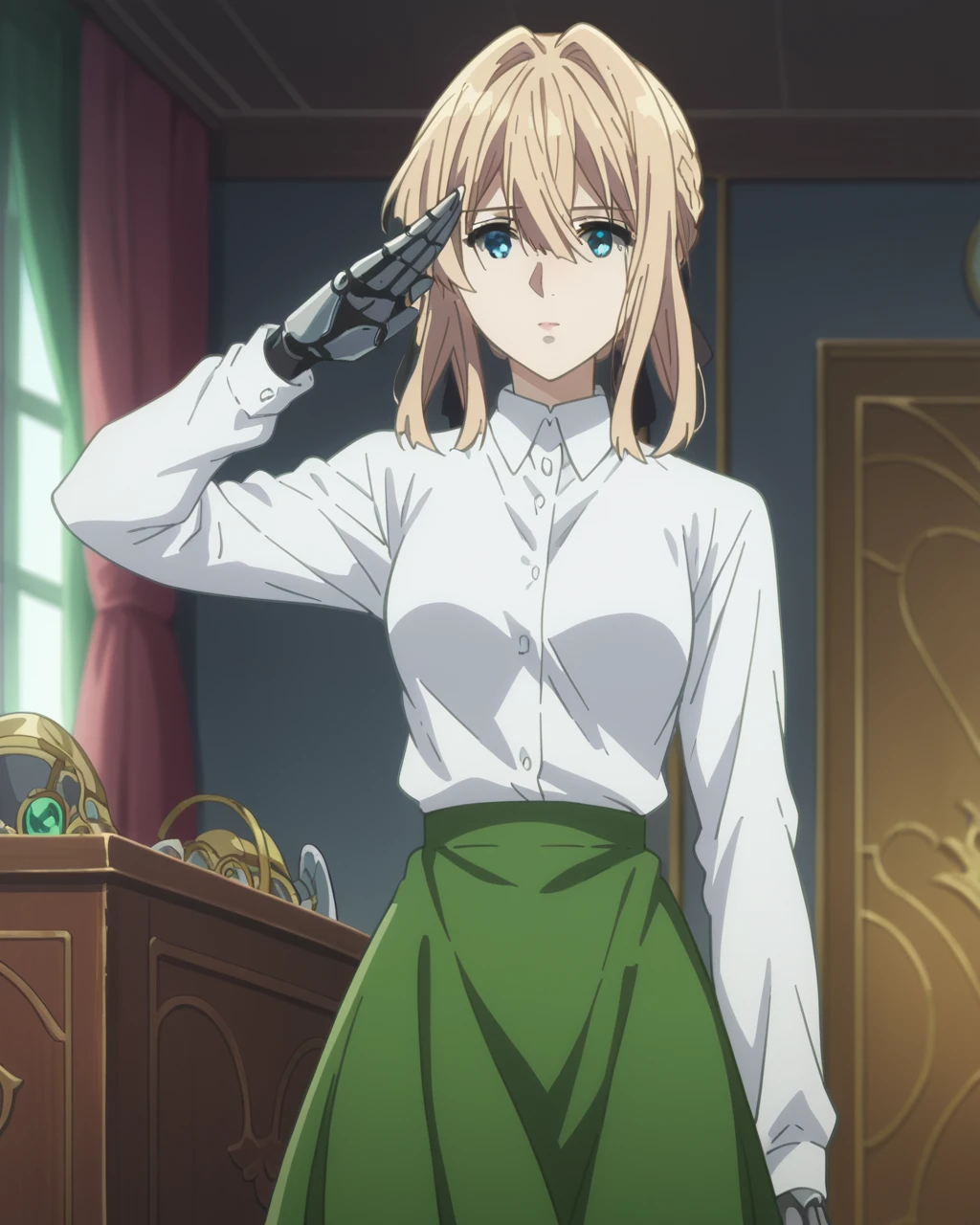 1girl, solo, violetevergarden, blonde hair, blue eyes, hair between eyes, braid,