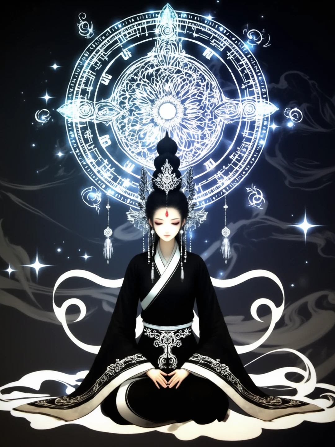 1.long hair, eyes closed, female solo, china_dress, sfw, chinese clothes, 1girl, earrings, red eye, mask, original character, very long hair, jewelry, black hair, mask on head, dress