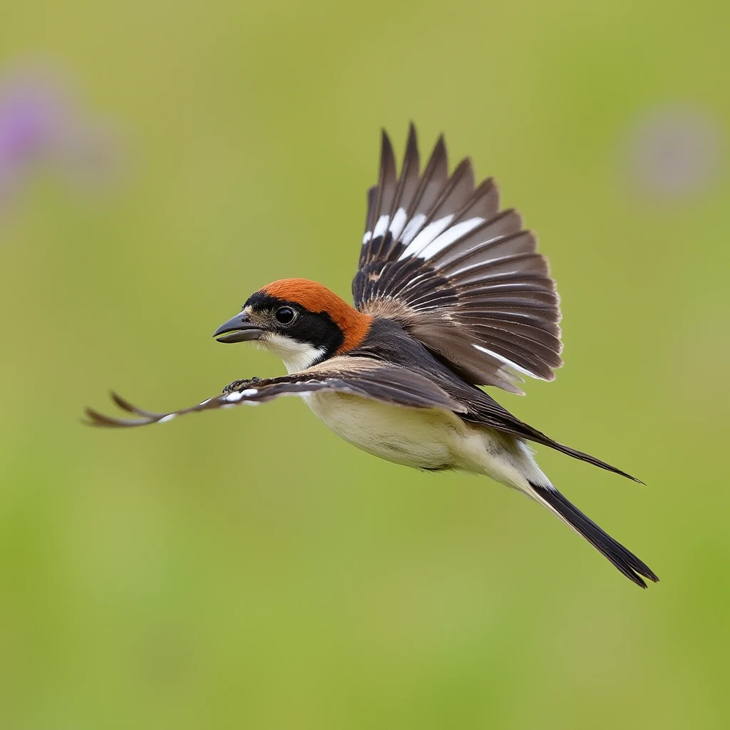 Impaling Prey: While not as common as in some other shrike species, Woodchat Shrikes are known to occasionally impale their prey on thorns or barbed wire, a behavior that may be used to store food or to dismember larger insects.