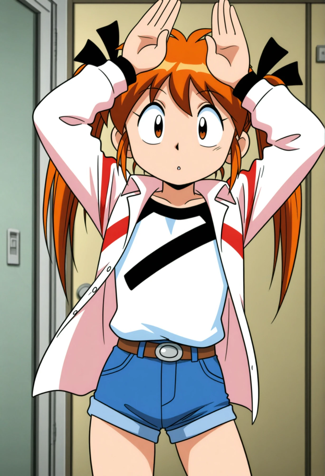 1girl,hair ribbon,twintails,short shorts,open clothes,long sleeves