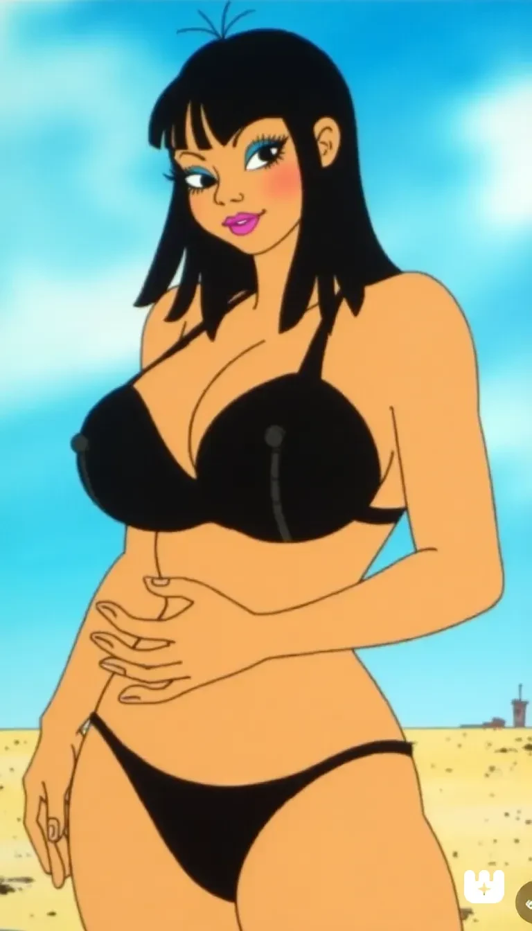 Rozzie, Black Bikini, Wide Hips, Lipstick, Black Hair, Big Breasts
