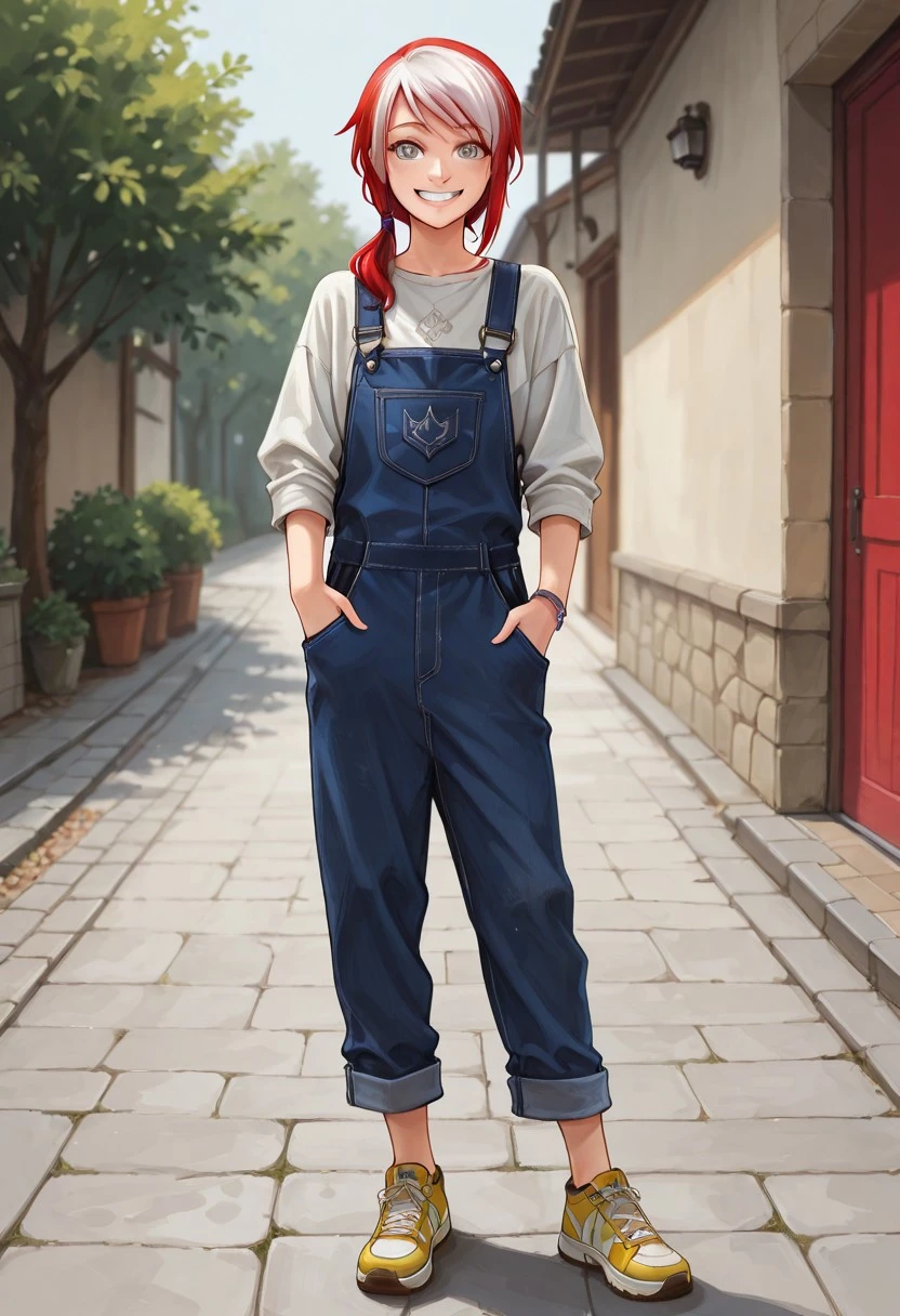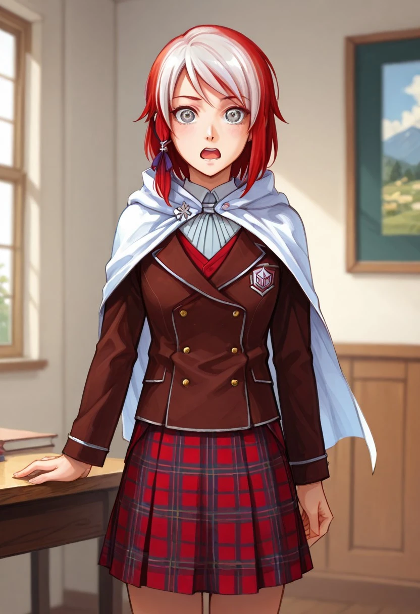Custom RWBY OC Mei Schnee — a striking character with multicolored hair, grey eyes, and a flair for battle! Includes her main outfit, hairstyle, and optional cape for both heroic and casual scenes.