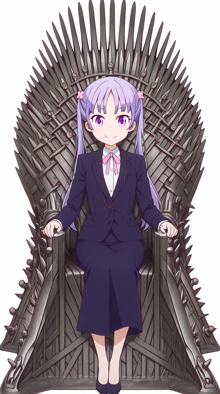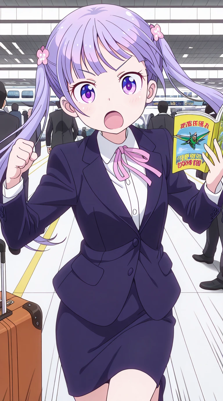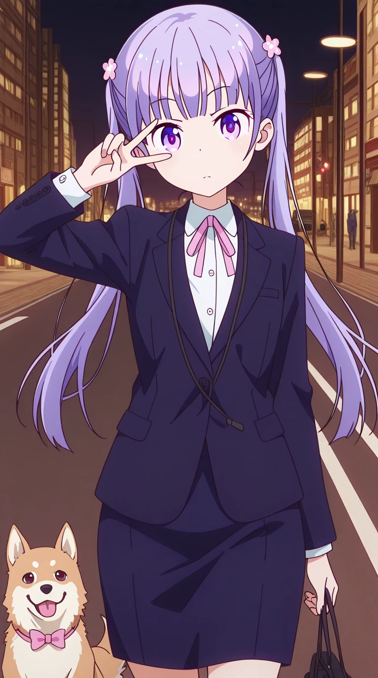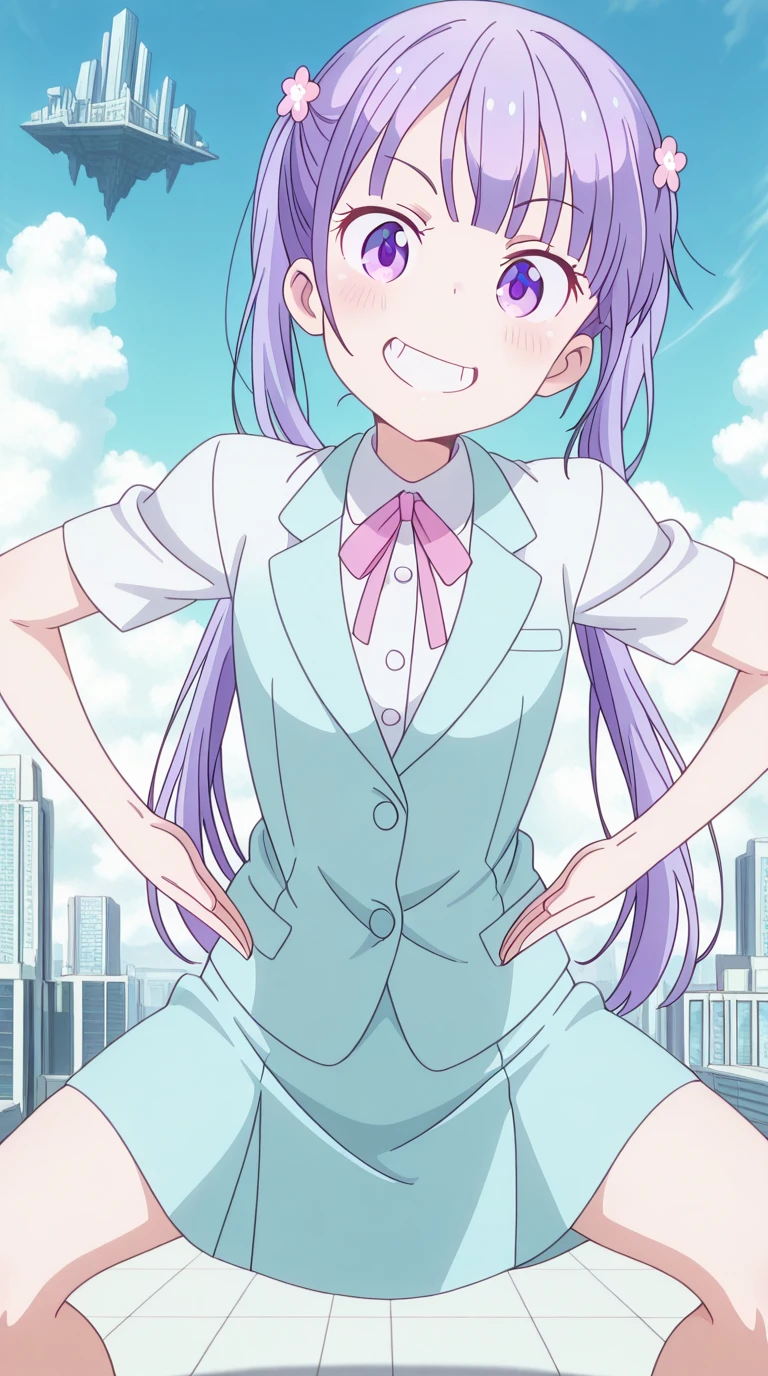 aoba suzukaze, eyebrows, hair ornament, long hair, purple eyes, purple hair, twintails, anime screencap