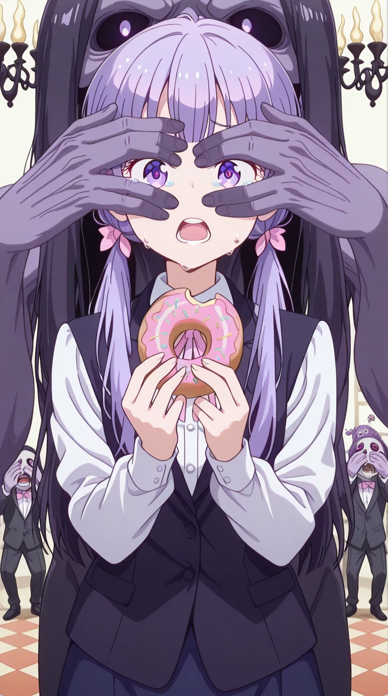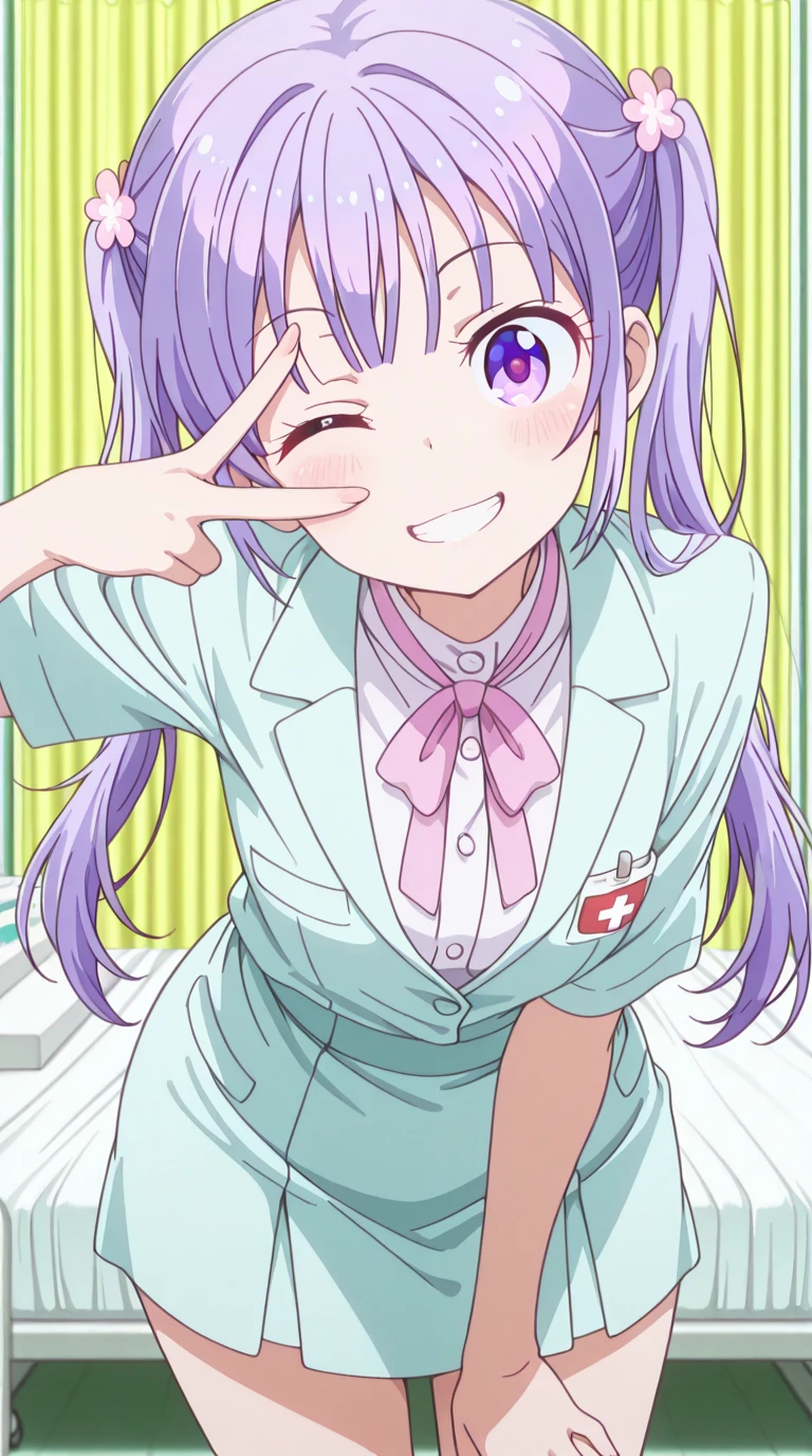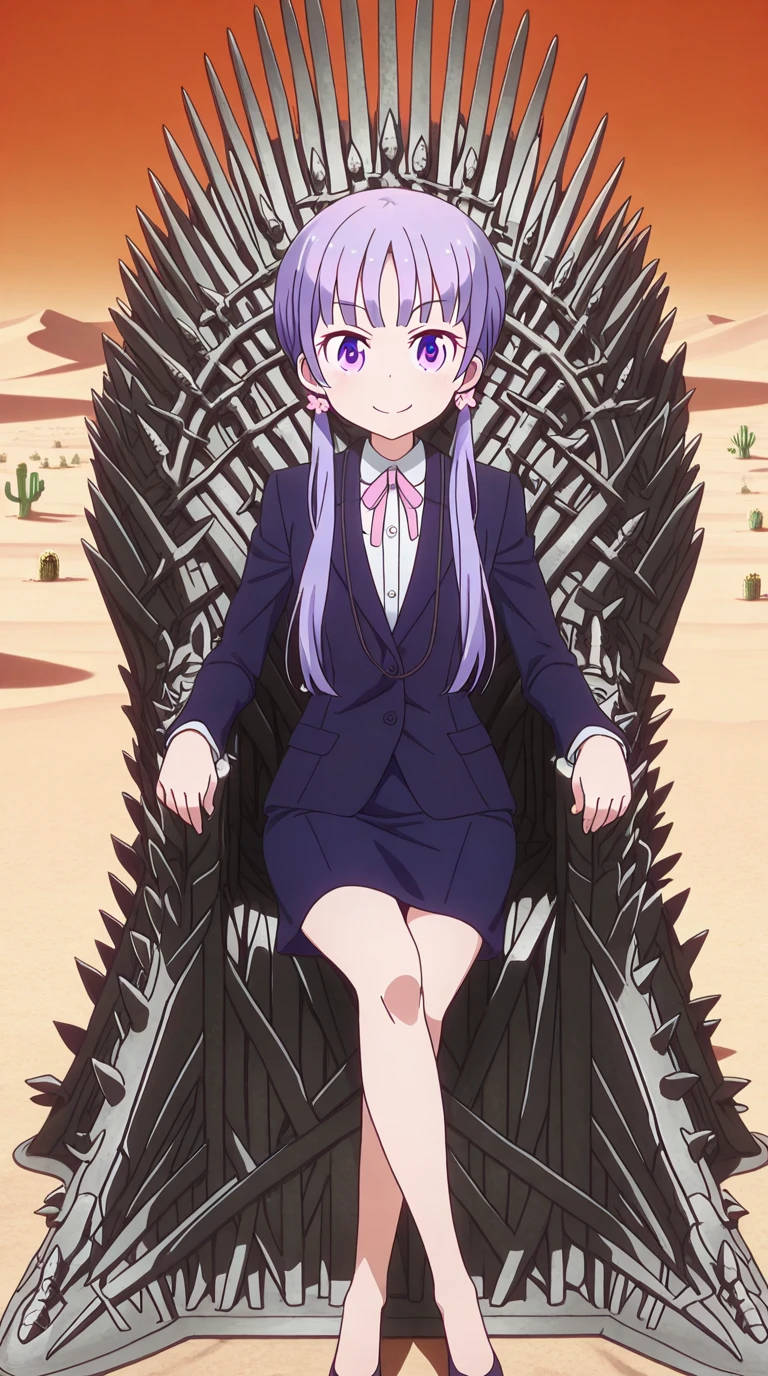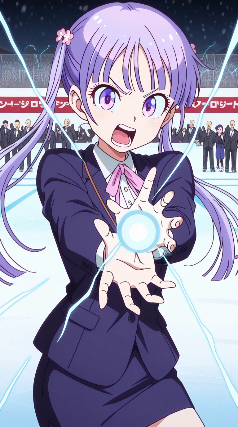 aoba suzukaze, eyebrows, hair ornament, long hair, purple eyes, purple hair, twintails, anime screencap