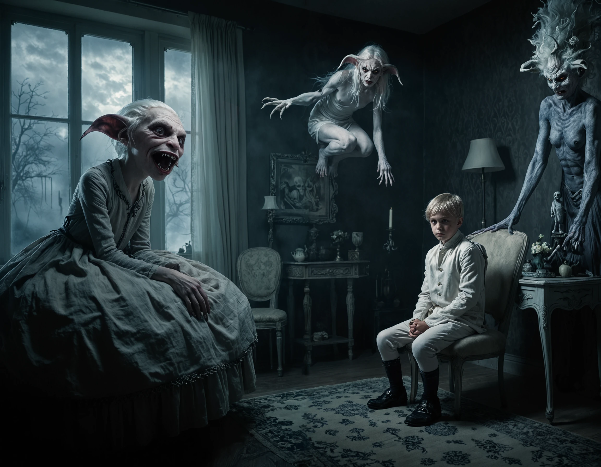 This Lora gives an albino gloomy effect to the characters and animals, and to the composition to a lesser extent.