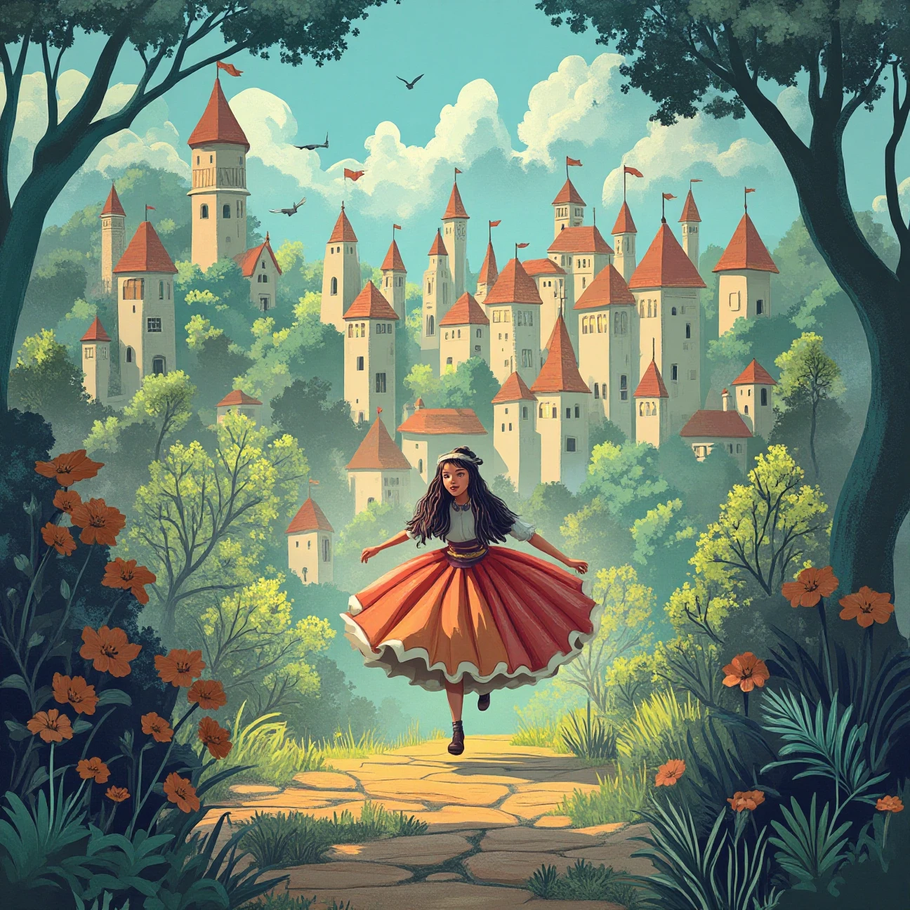 Settings: Enchanted forests, quaint villages, flowery meadows, etc