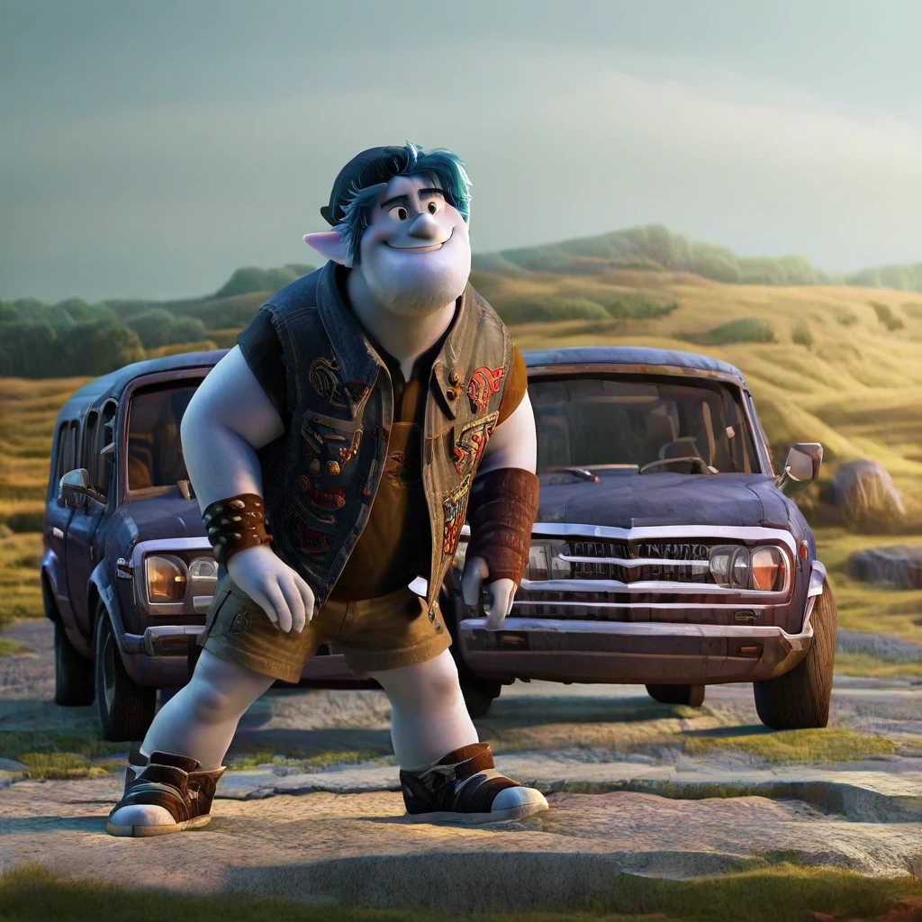 Barley Lightfoot, 1boy, solo, male focus, pointy ears, blue hair, blue skin, colored skin,