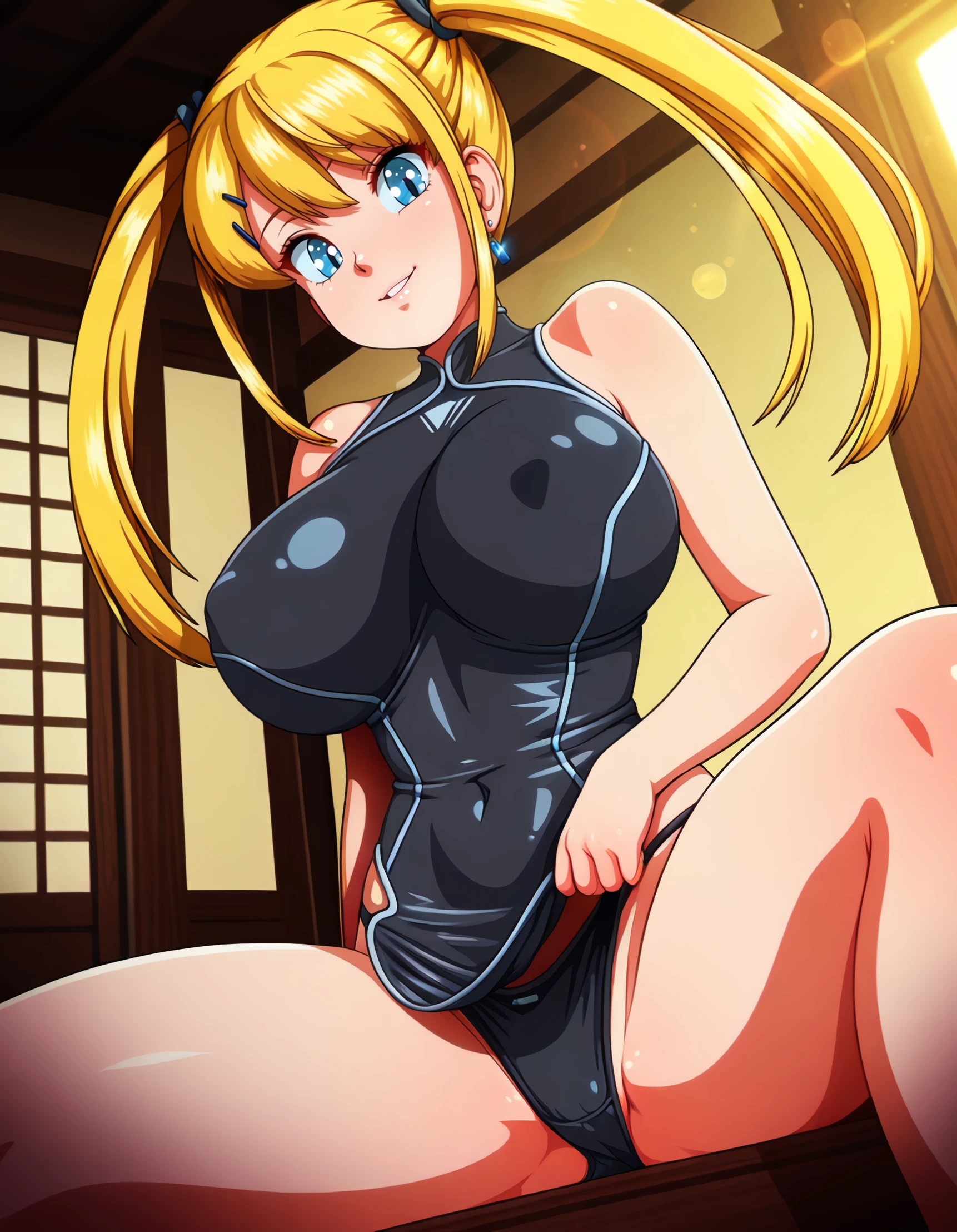 tsundero_-_saya_minato, long_hair, blonde_hair, twintails, hair_ornament, hairclip, blue_eyes