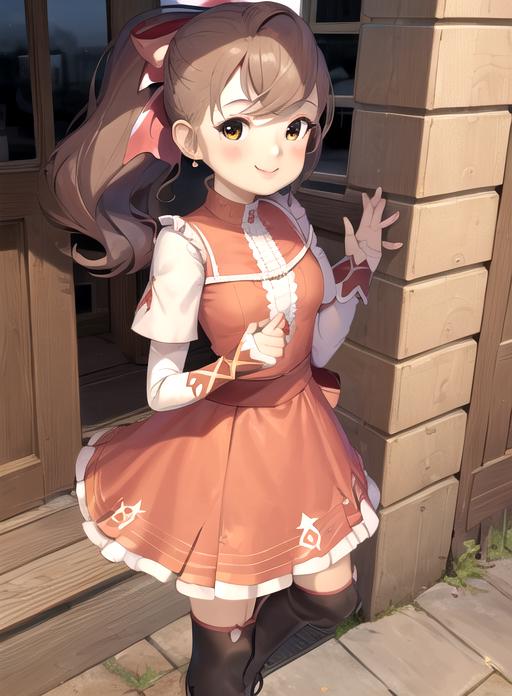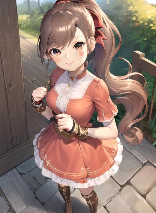 flora reinhold, brown hair, ponytail, black eyes, brown eyes, hair ribbon,