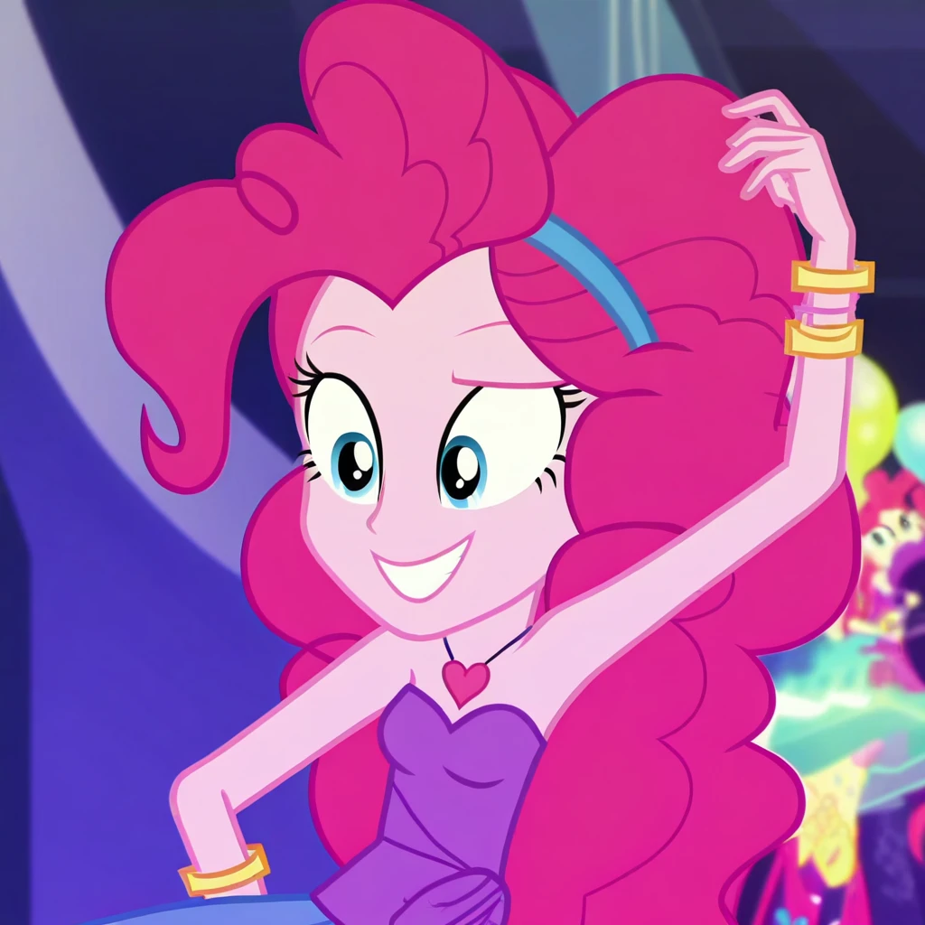 Pinkie Pie, equestria girls, dress, women, jewelry, necklace, skirt rah rah, sleeveless dress, vector, illustration, yellow capri tights, High heels
