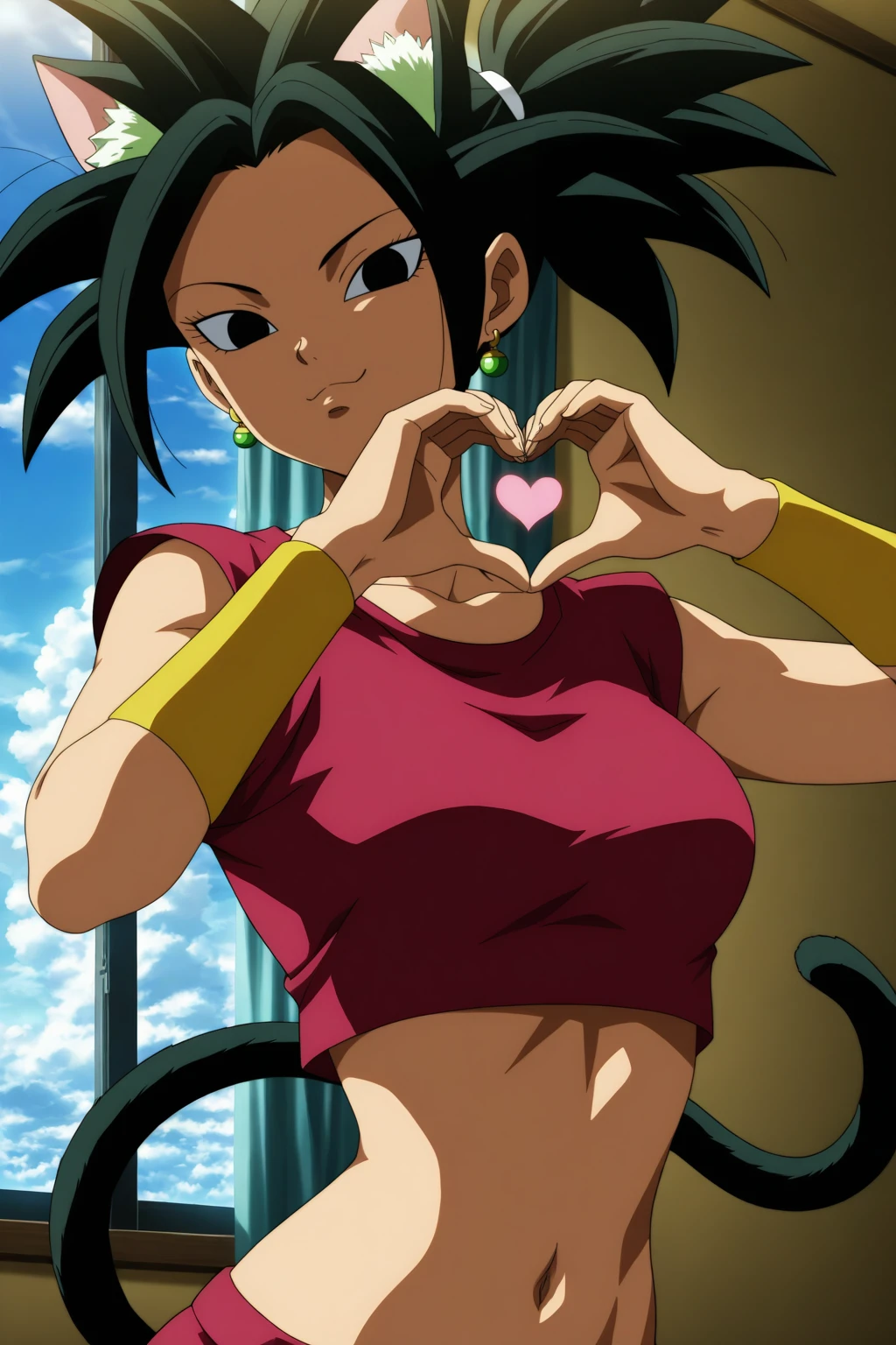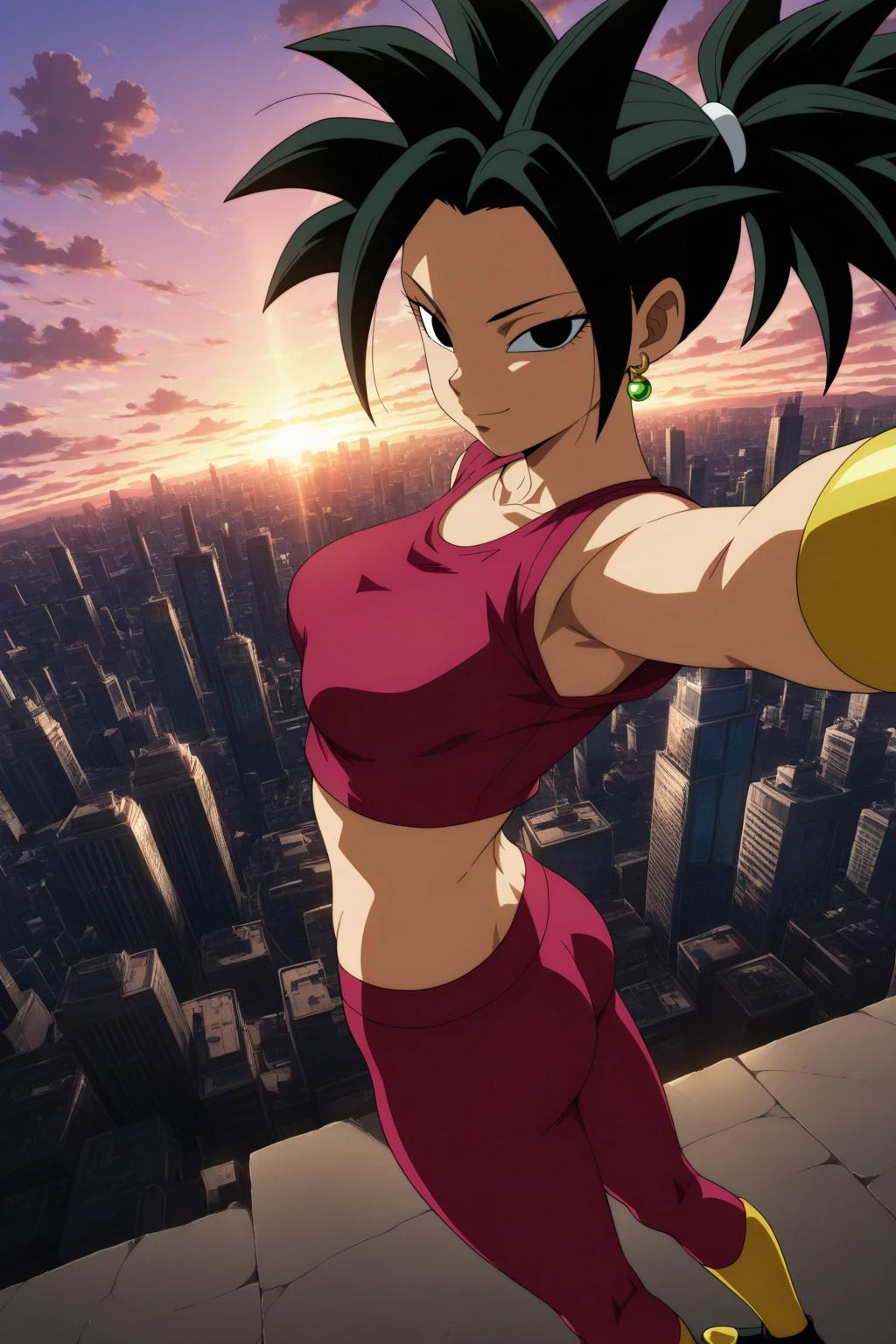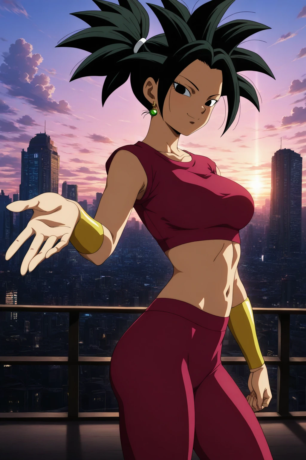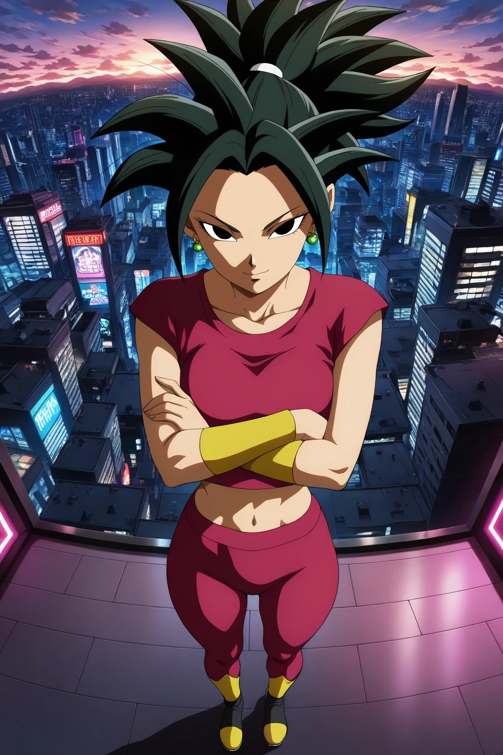 kefla, green hair, blue eyes, earrings, spiked hair, super saiyan, abs (muscular)