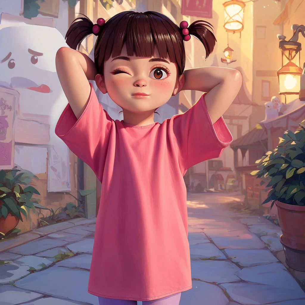 Character lora for Boo from Monsters inc (add teeth to the negatives. most shots of boo in the movie have her teeth showing and the artists were not kind to her. Killed the lora if you don't place teeth in negatives.)