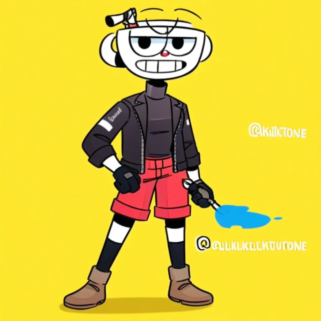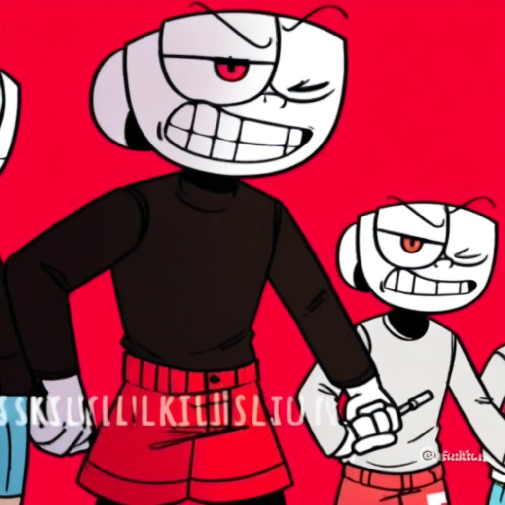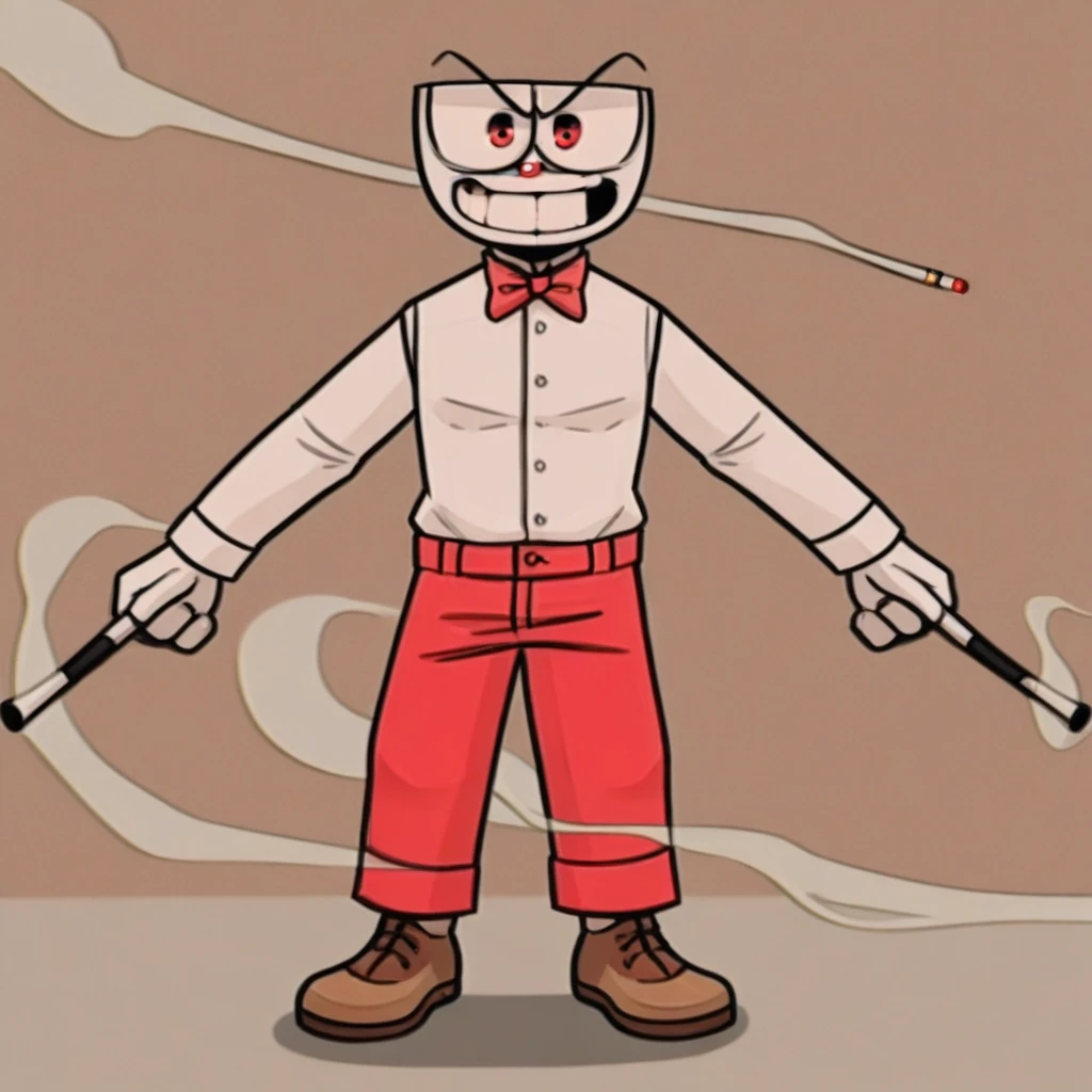 shorts, red pants, black eyes, male focus, Cuphead, handle, white skin