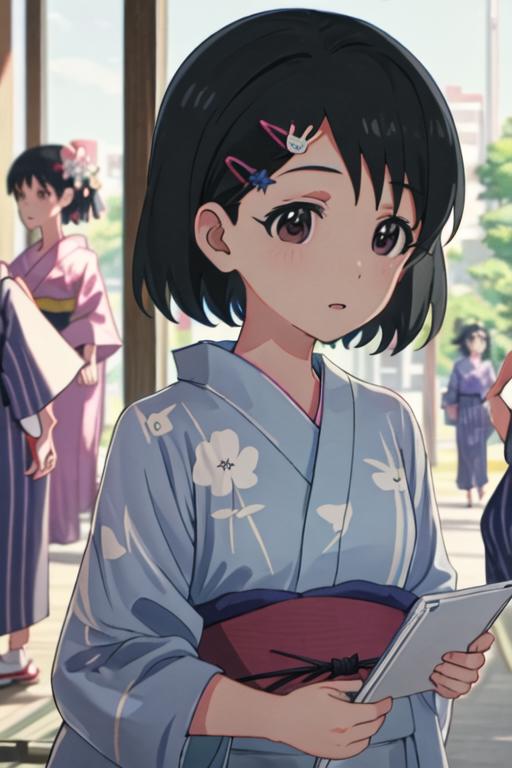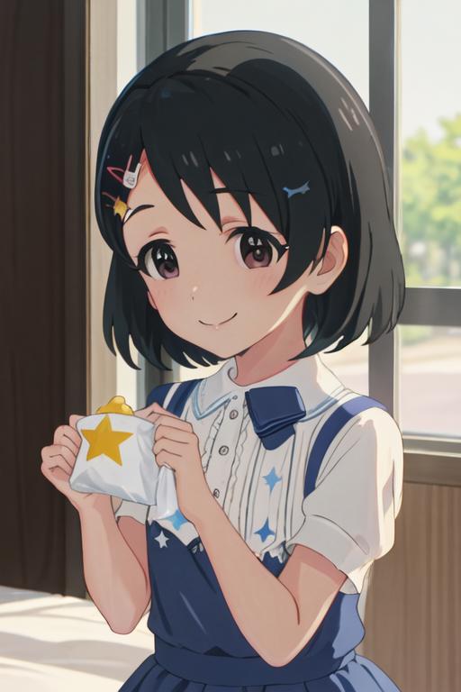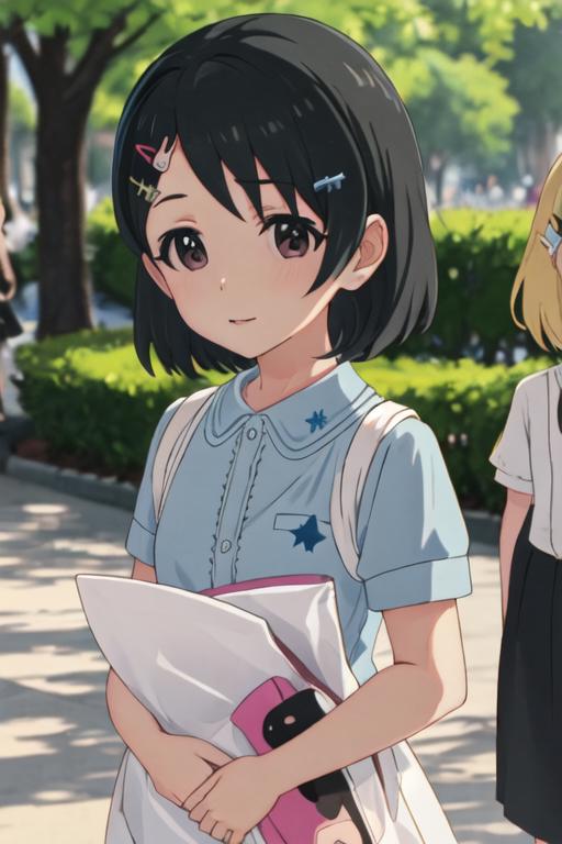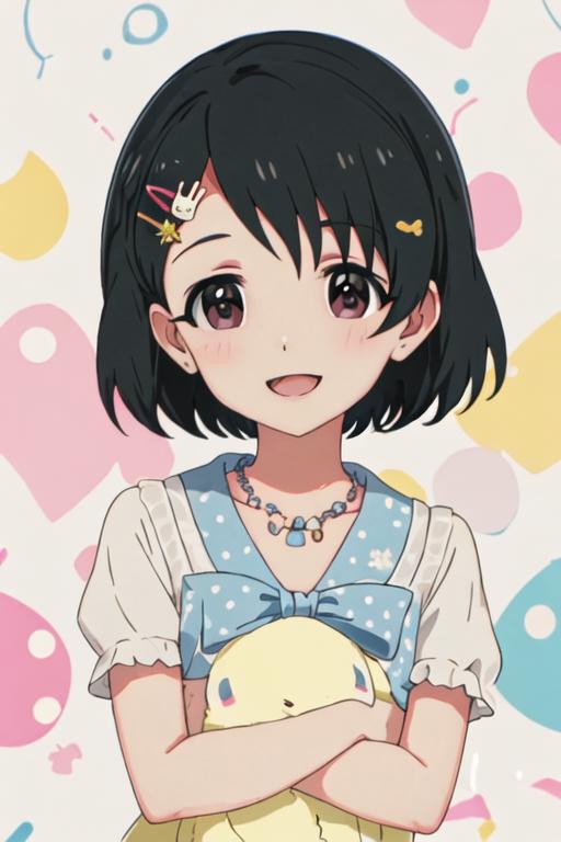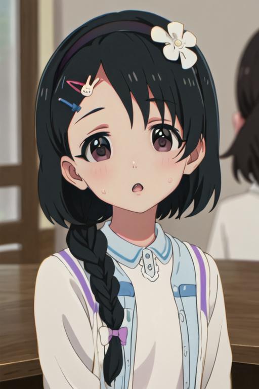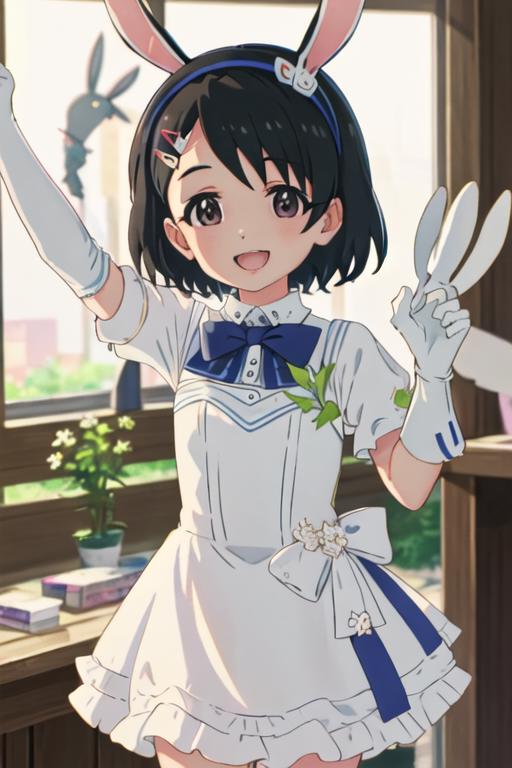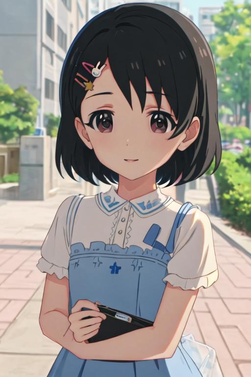 The trigger word is sasaki_chie_theidolmastercinderellagirlsu149, and the recommended tags are best quality, masterpiece, highres, solo, {sasaki_chie_theidolmastercinderellagirlsu149:1.15}, black_hair, short_hair, hair_ornament, hairclip, brown_eyes, rabbit_hair_ornament, upper_body, bangs.