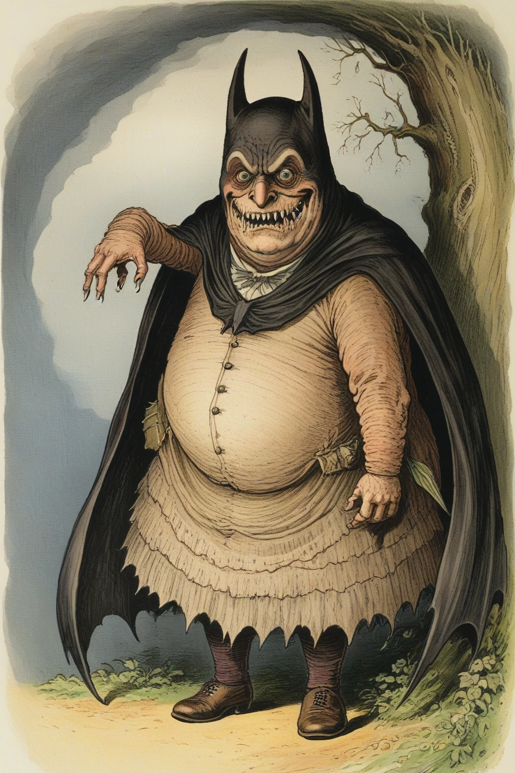 Illustration drawing: use 'creepy creature drawing' or add 'ink drawing' / 'illustration' if your checkpoint insists on making photos,