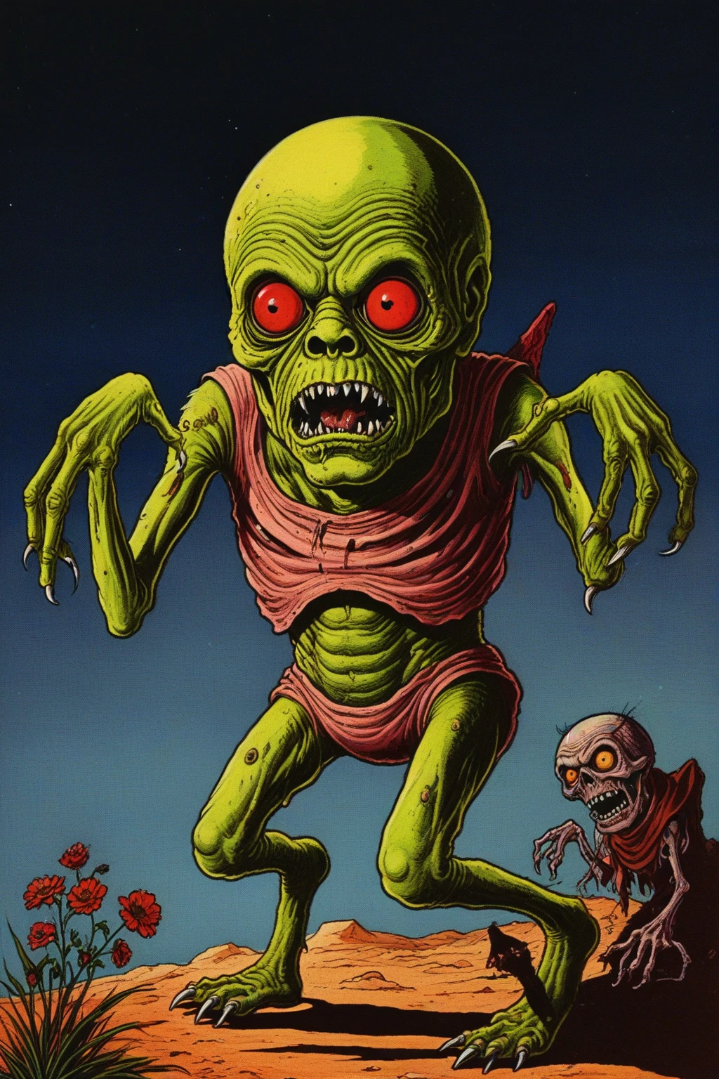 LoRA to generate creepy creatures and monsters with a lot of character. Inspired by 70s style comic illustrations, mainly Ken Reid's Creepy Creations.