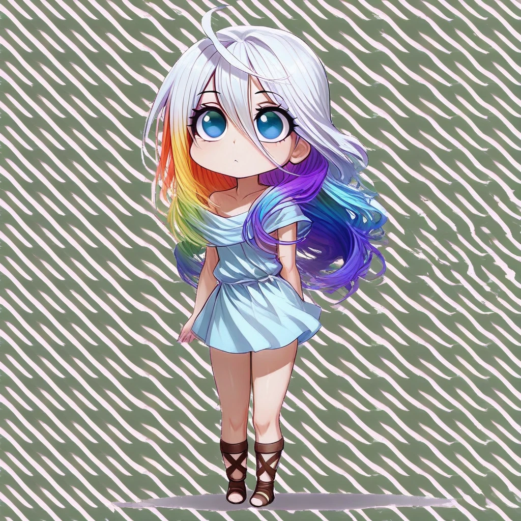 rainbow hair, very long hair, ahoge,blue eyes,flat chest,chibi