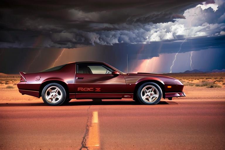 Use weight of 0.7-0.85.Prompt should typically begin with:camaroirocz a COLOR carWhere COLOR is any color you like.It will generate mostly stationary cars.