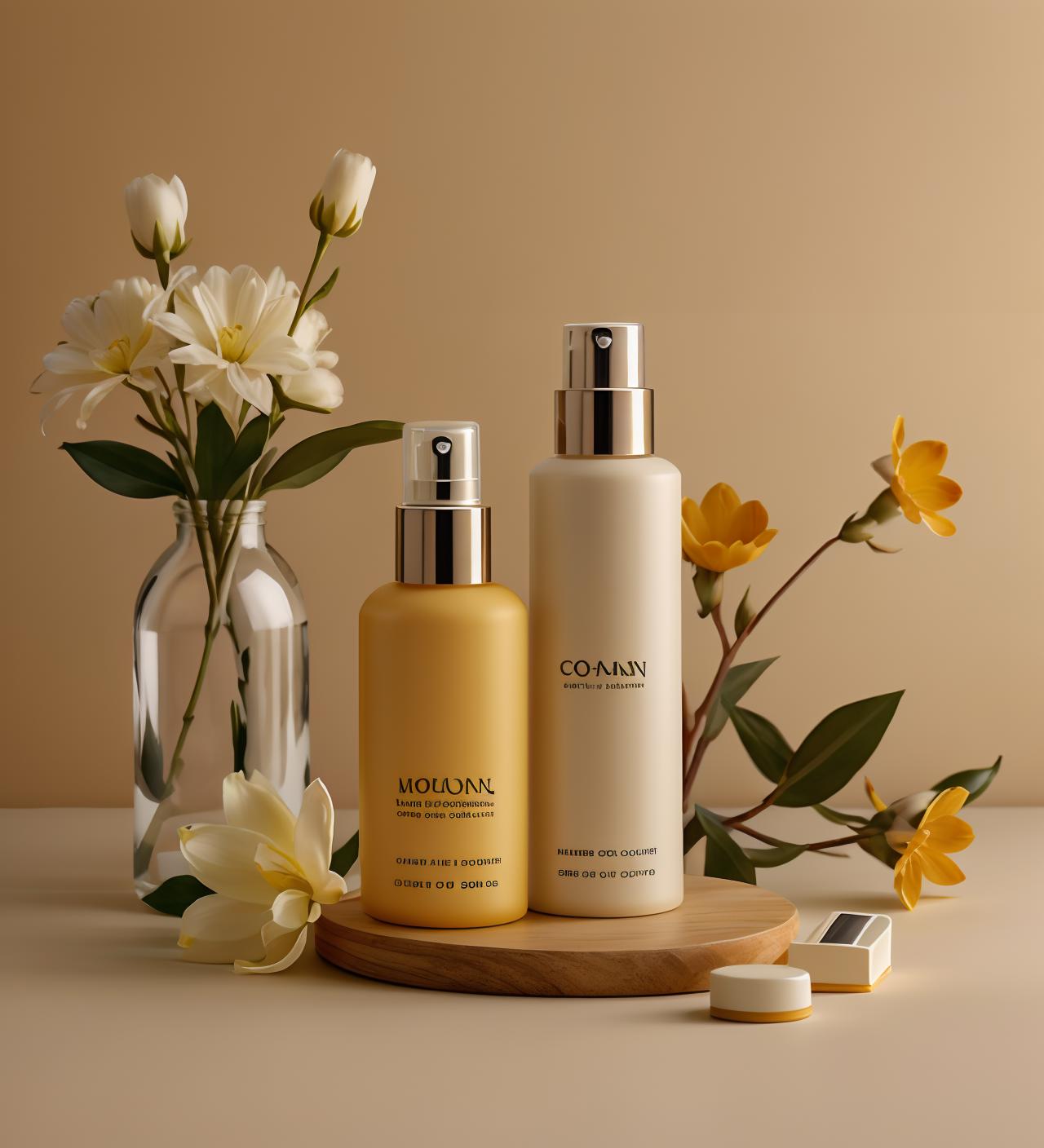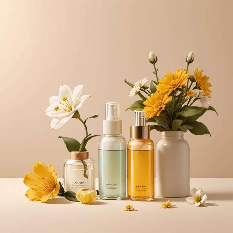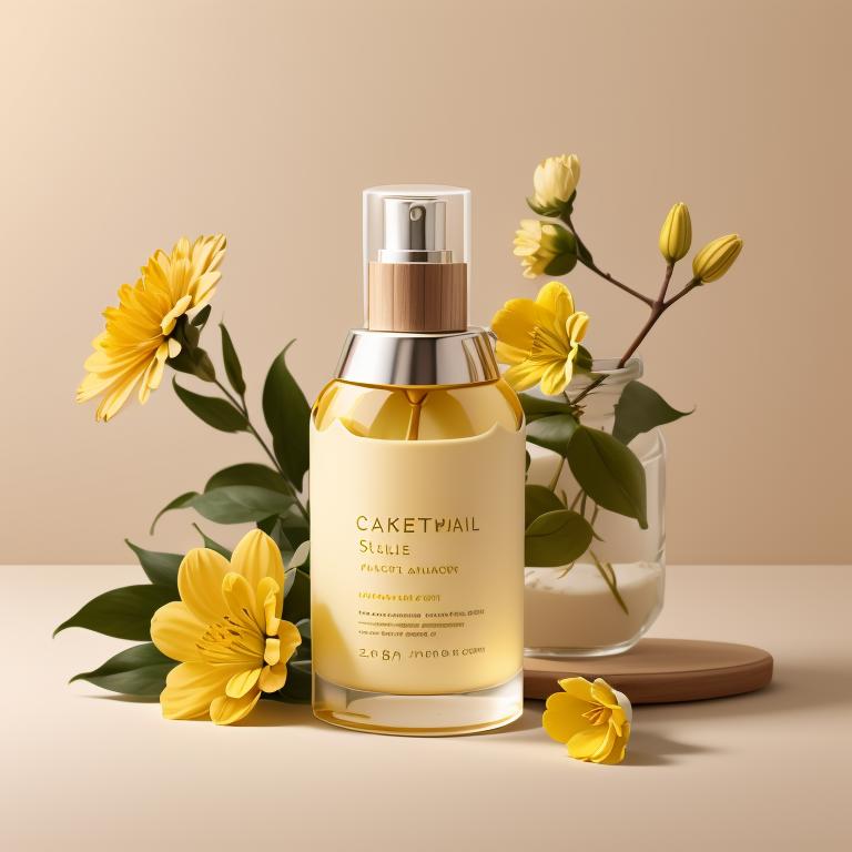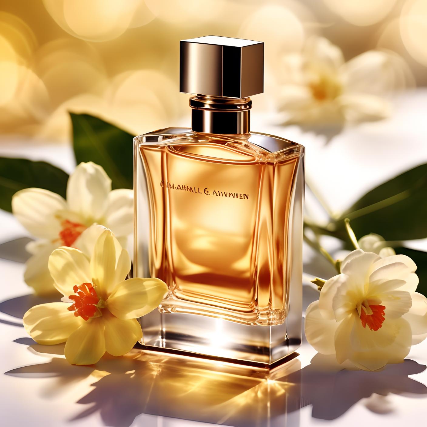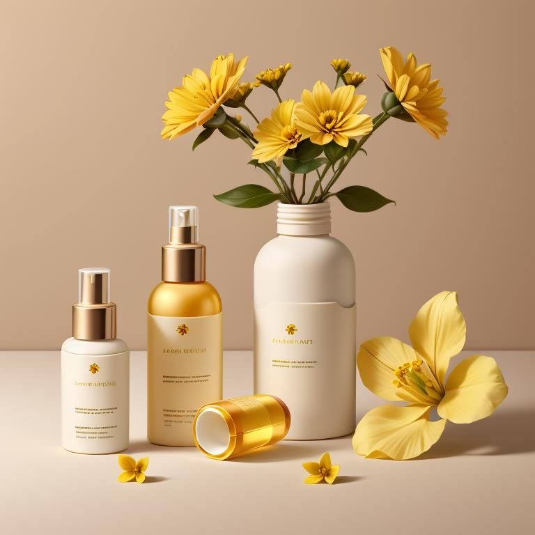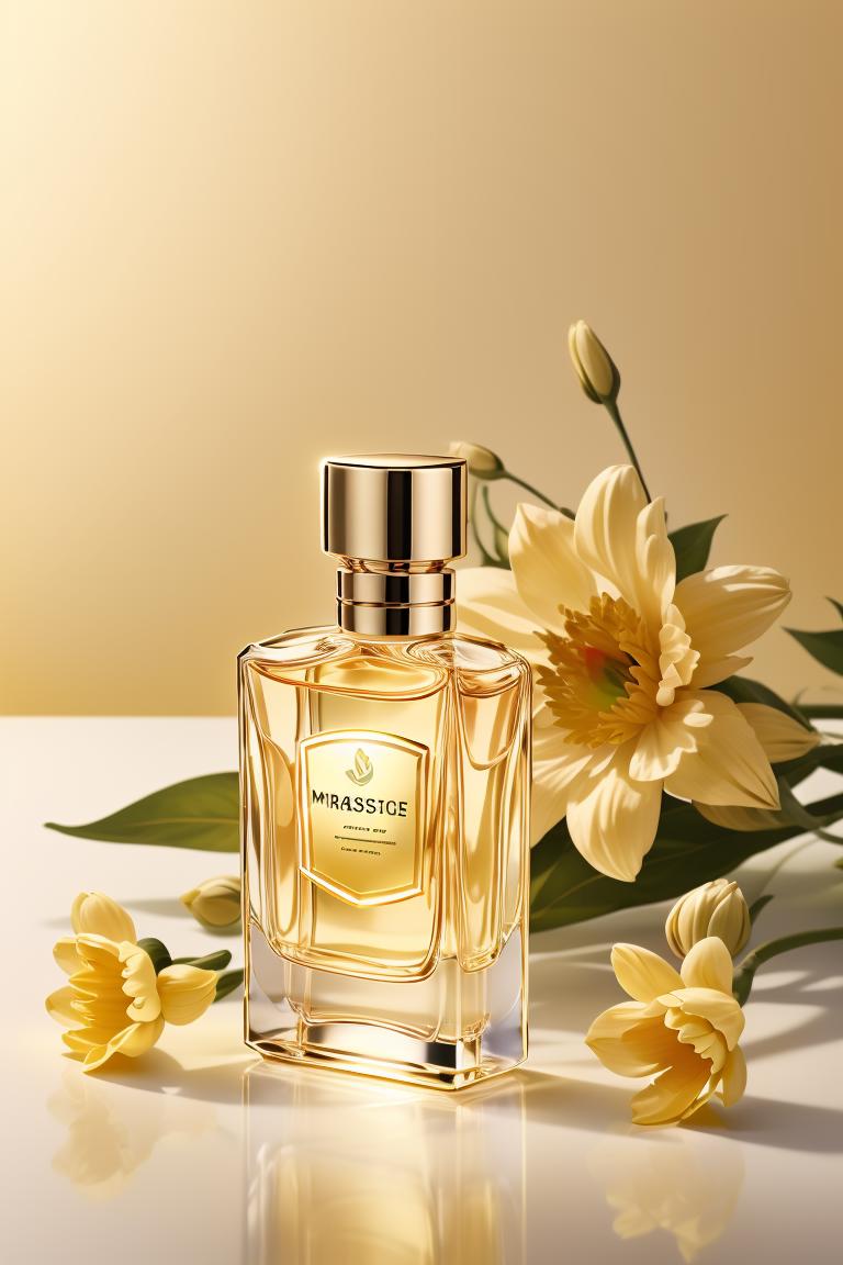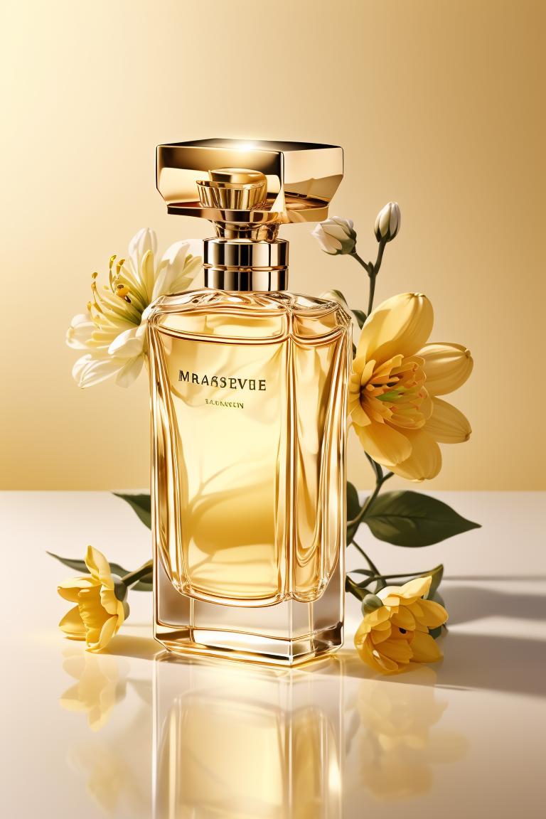 Prompt: perfume, yellow flower,  simple background <lora:product_design_v3:0.7>