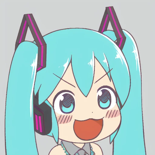 For making the iconic image style I recommend the following prompt syntax - "1girl, solo, simple_background, chibi, \:\D, \:\3, v\-shaped_eyebrows" along with a square aspect ratio. Note that the slashes, "\", might not be needed depending on your setup.