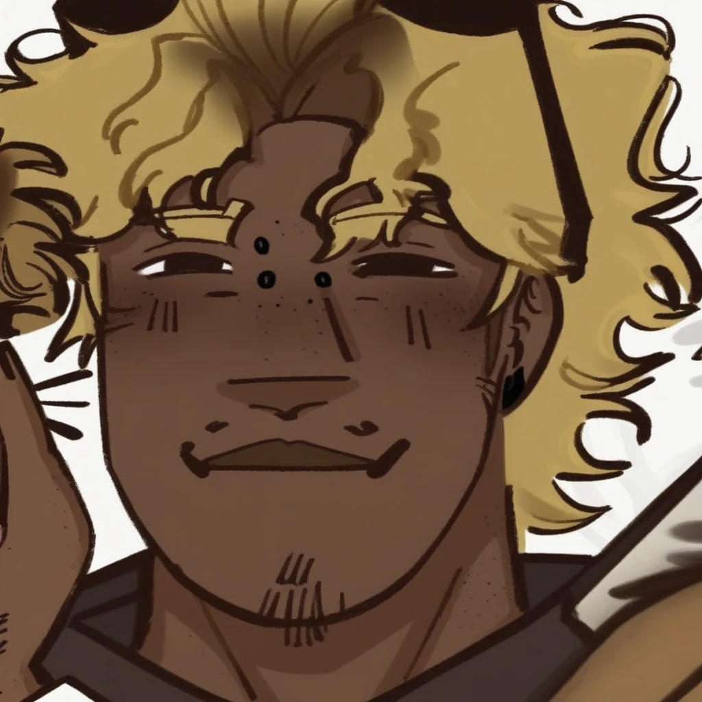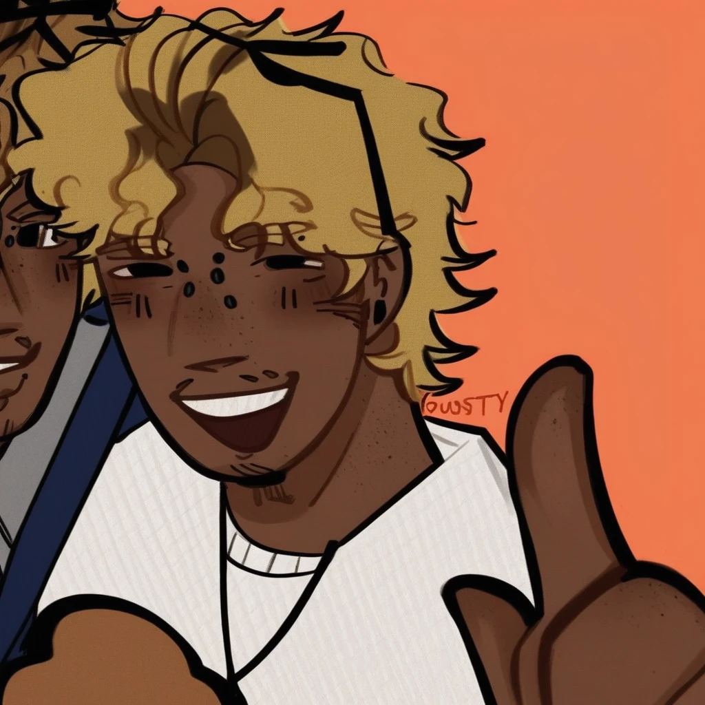 JeremyFNAF, blonde hair, brown roots, brown eyes, dark skin, male