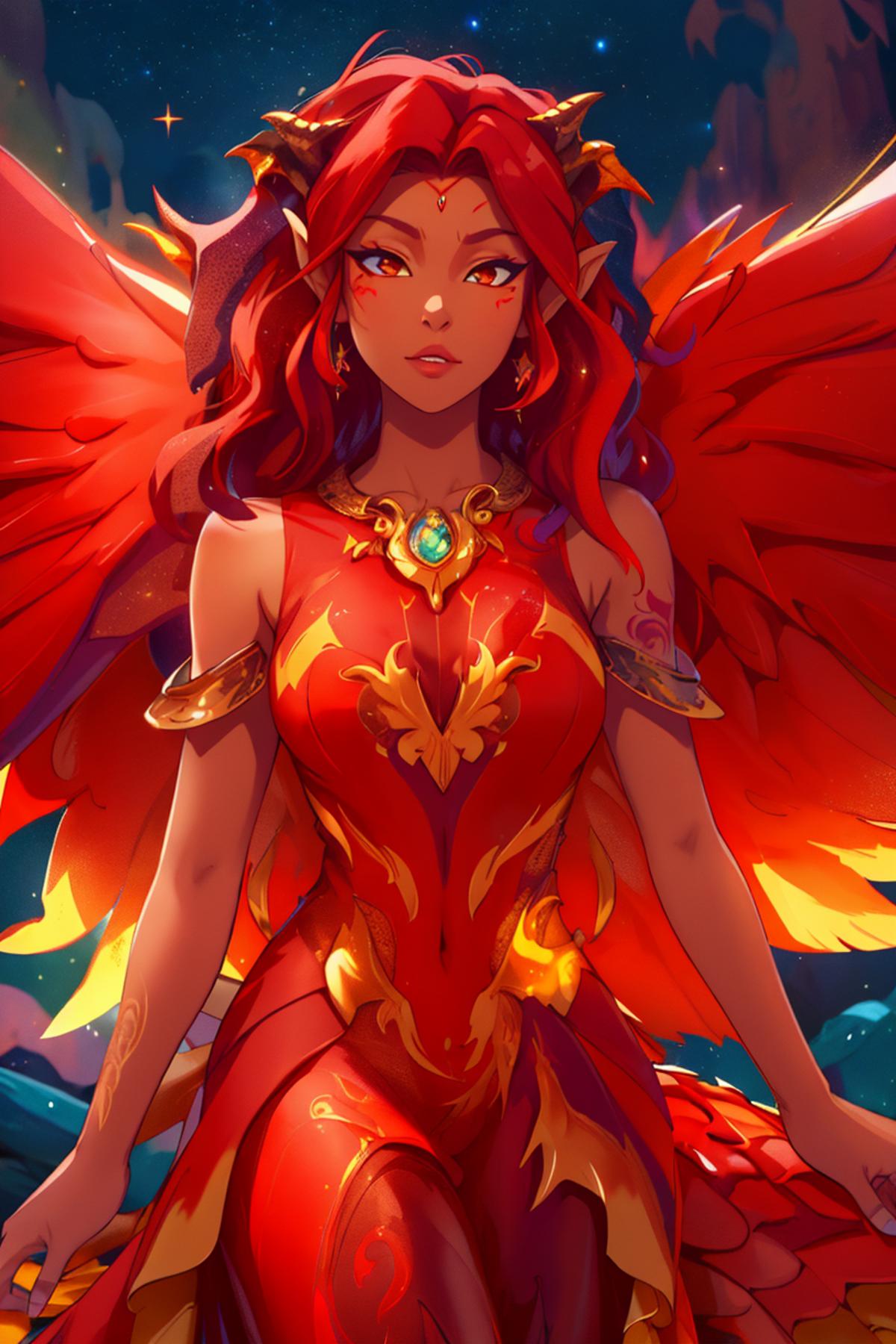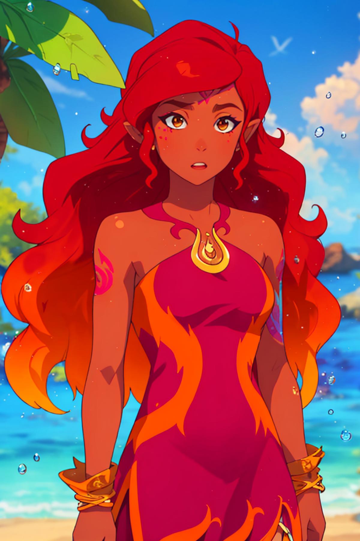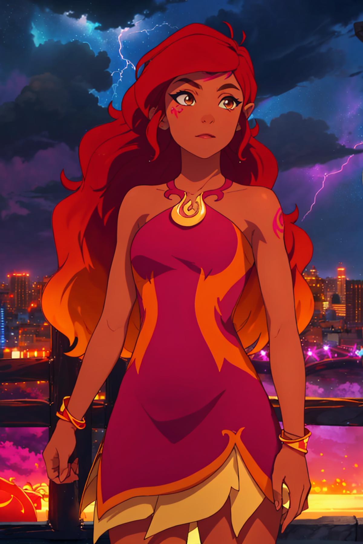 Additional: dark skin, red hair, brown eyes, gradient hair, tattoos