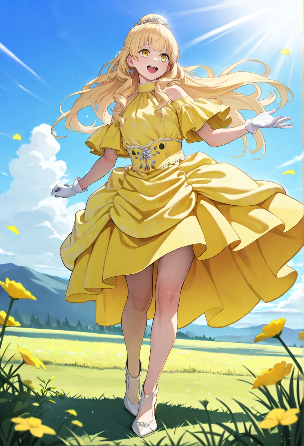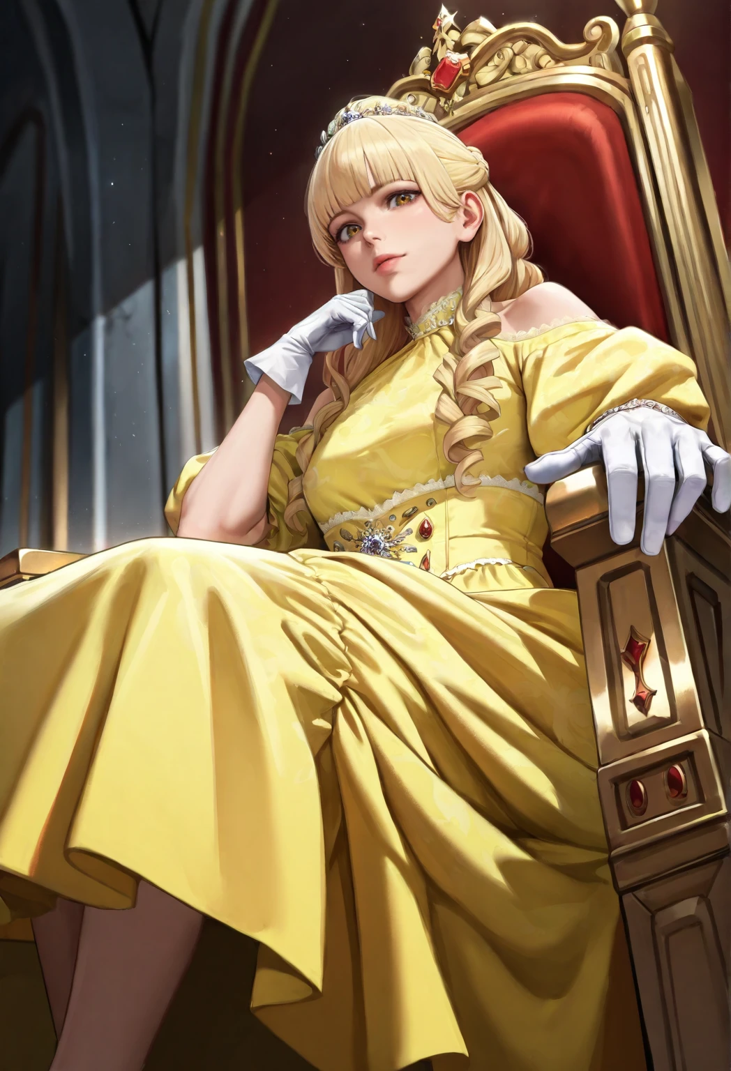 Recommended prompt: hymenoran, blonde hair, yellow dress, white gloves