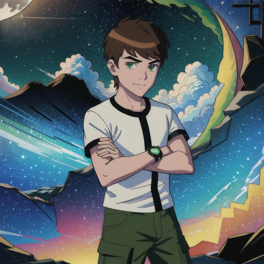 Kid Ben Tennyson from Ultimate Alien. For the best result, weight it at 0.7 when changing Ben's outfit use in 0.6 ,It has problems with the hair area, mostly looking like bad quality. As a solution, I recommend adding words like "clean hair,clean brown hair,8k,absurdres." Although I cannot guarantee it will work, nonetheless, it is worth a try. I think it works best with the Darksushi model, but you can try it yourself. Honestly, the Lora is kind of hard to use, and the results are not always the best. And of course, it does not work that well with most checkpoints, especially Anylora. Anyway, maybe some people enjoy it. also I used all for it vae-ft-mse-840000-ema-pruned