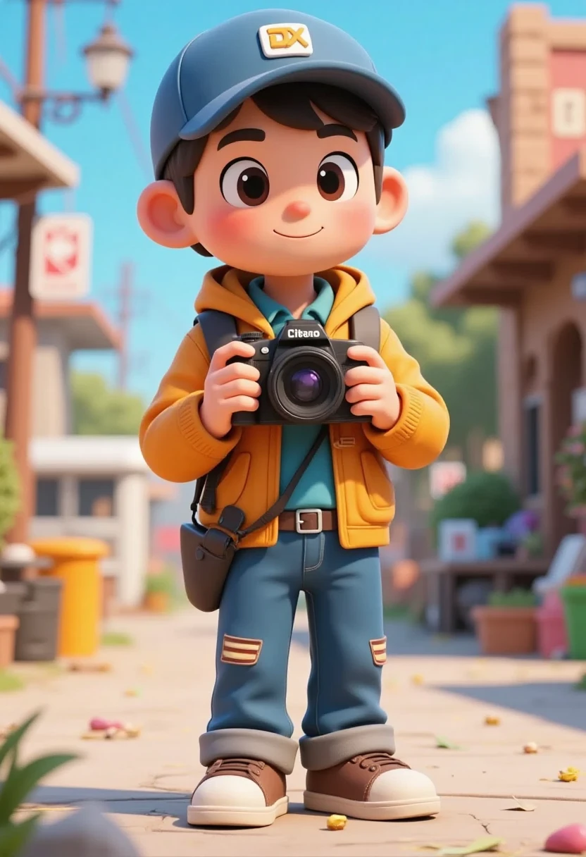3. Cartoon character representing various occupations, photographer with camera, casual outfit, outdoor scene, vibrant tones.