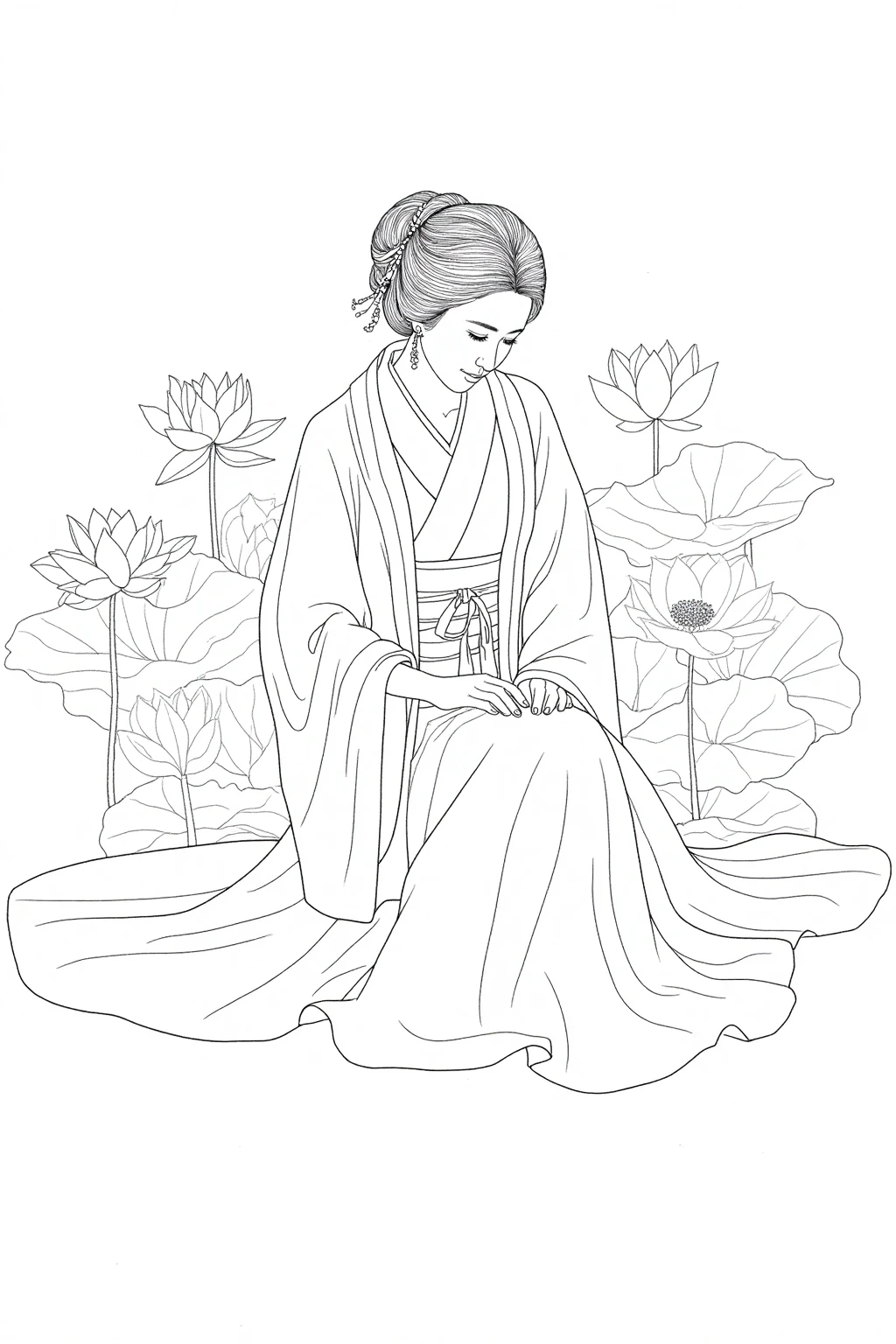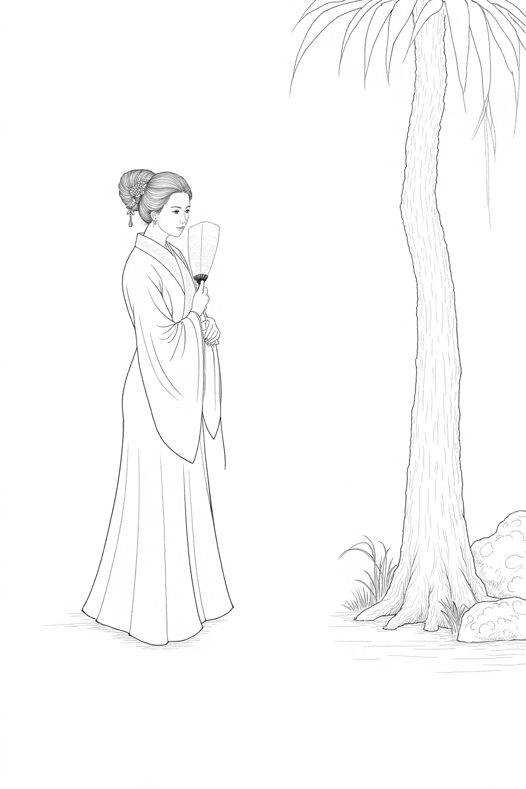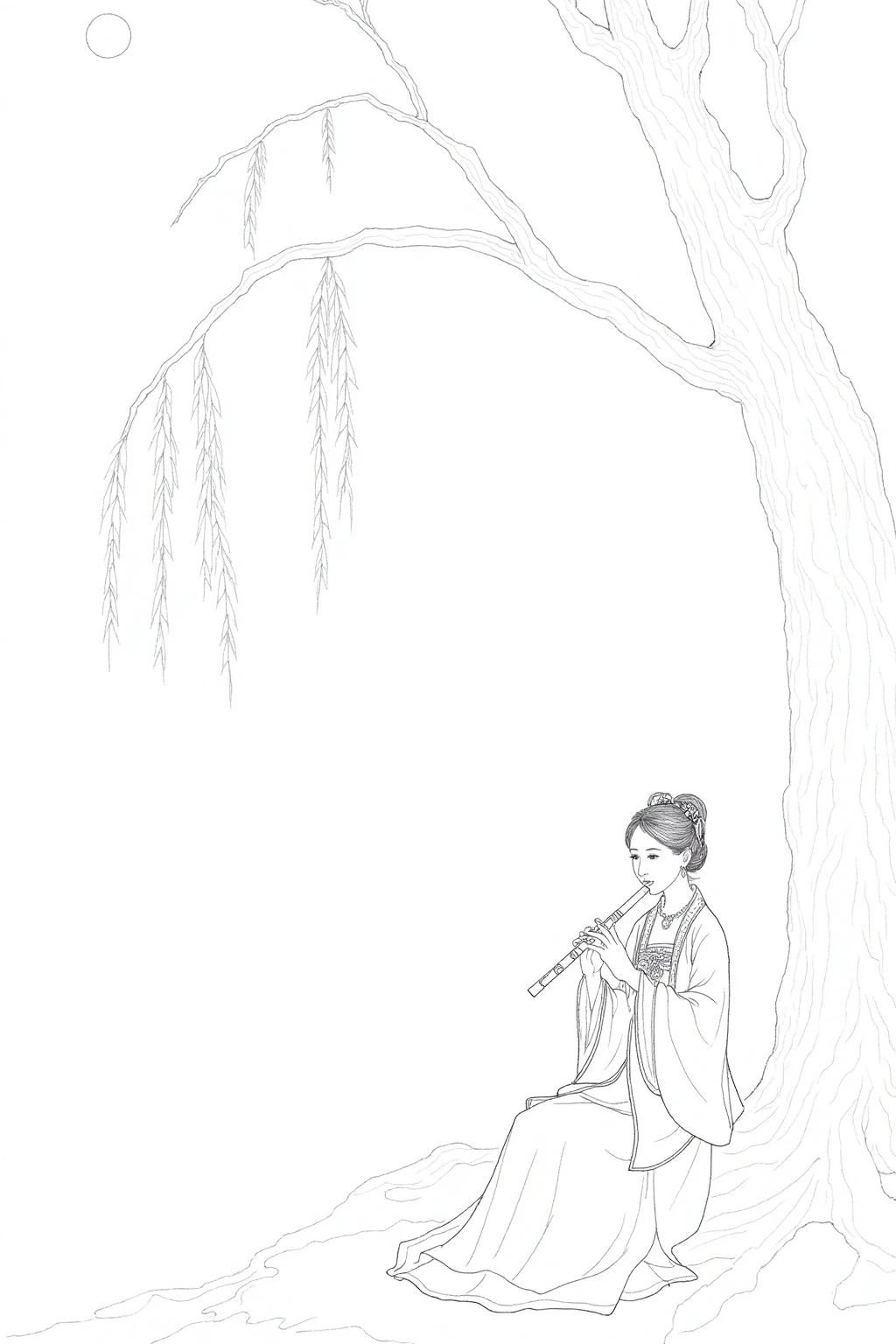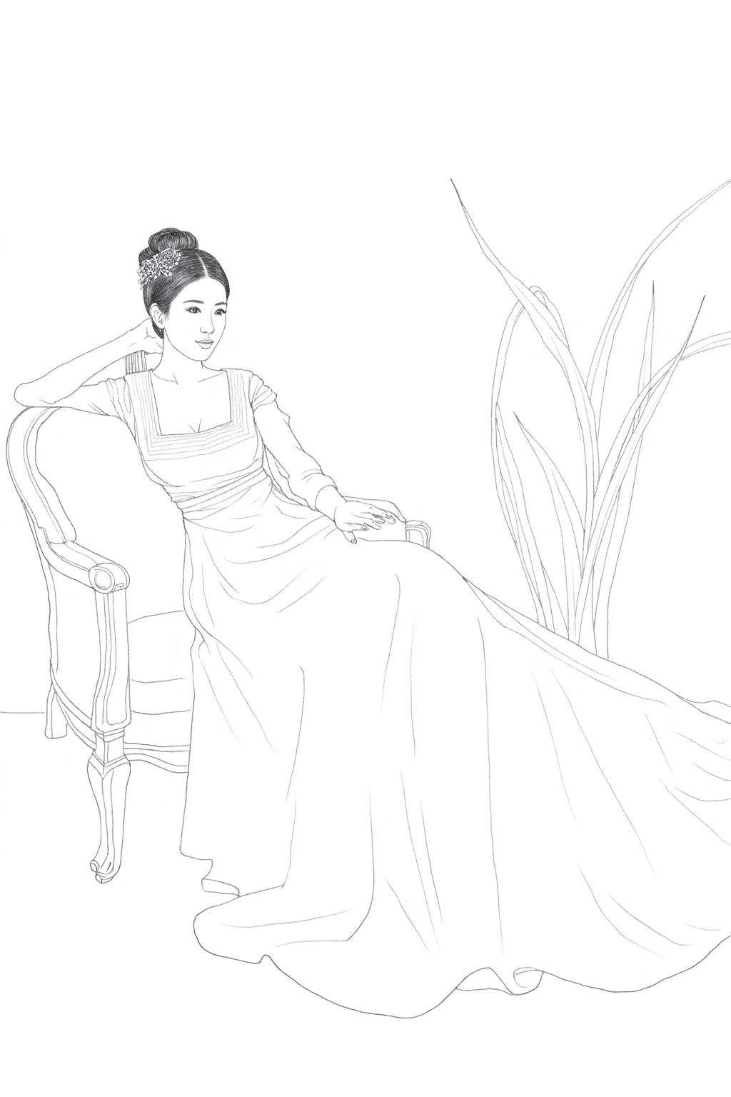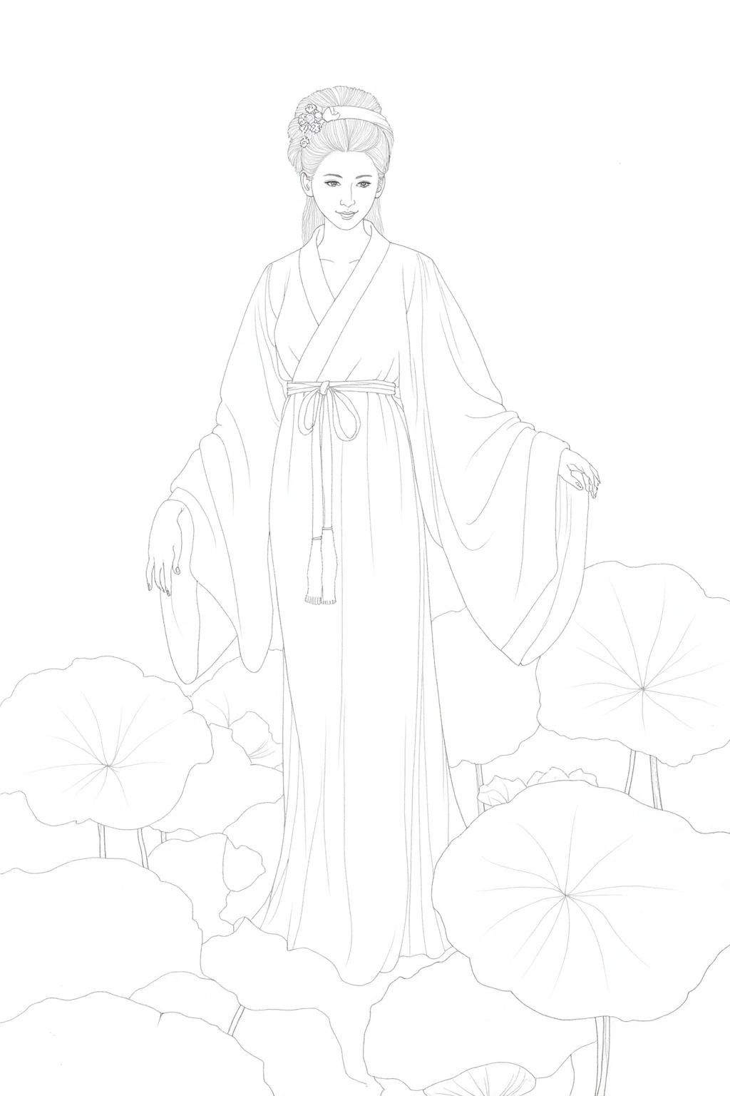 Flux-古画女性线稿-Chinese ancient painting female line drawing - Flux-Line Art