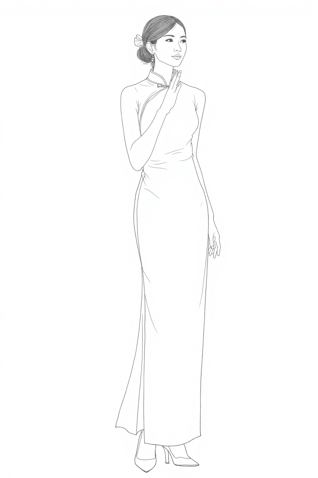 一个中国古画中女性的线稿,有西施浣纱,贵妃醉酒,昭君出塞这些。我套了个志玲姐姐的lora去跑的图