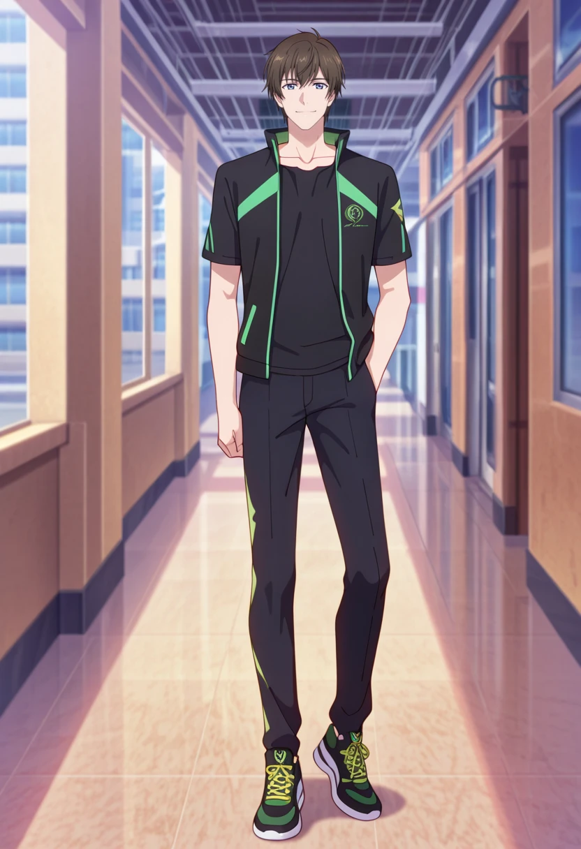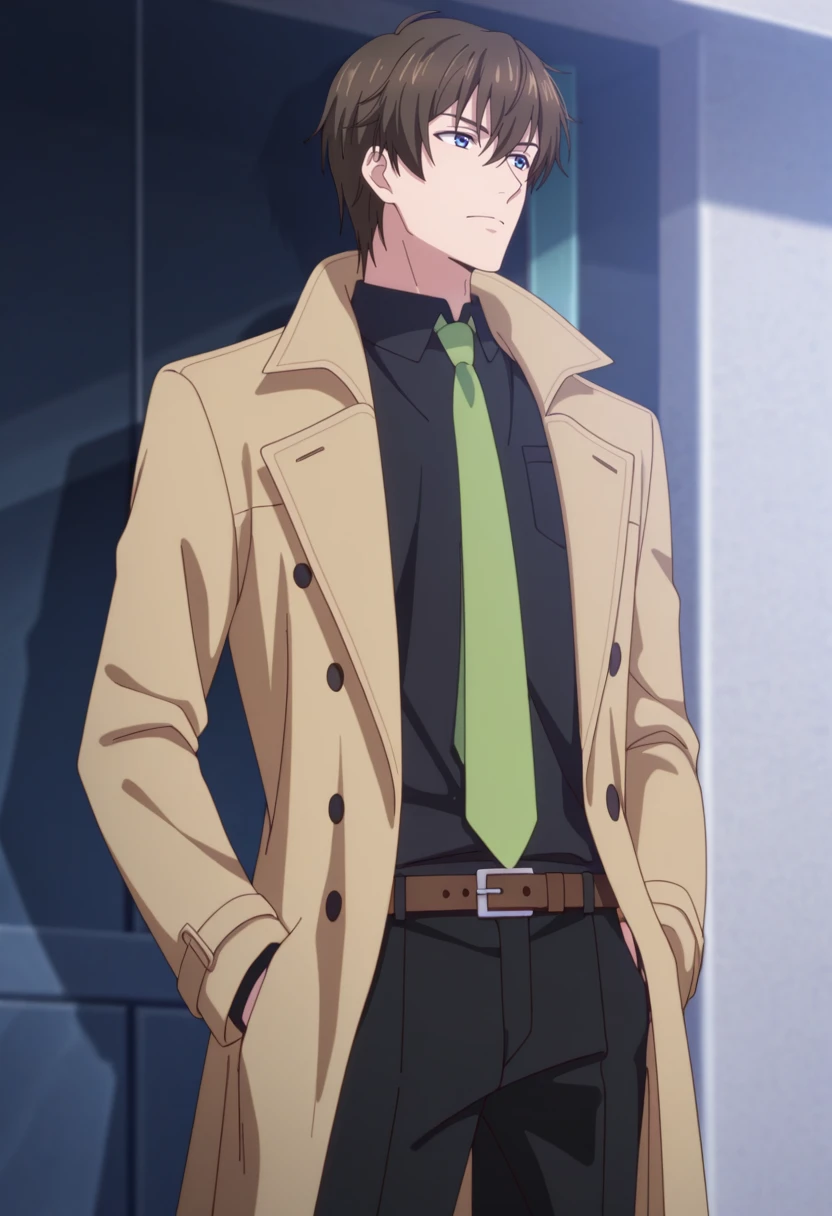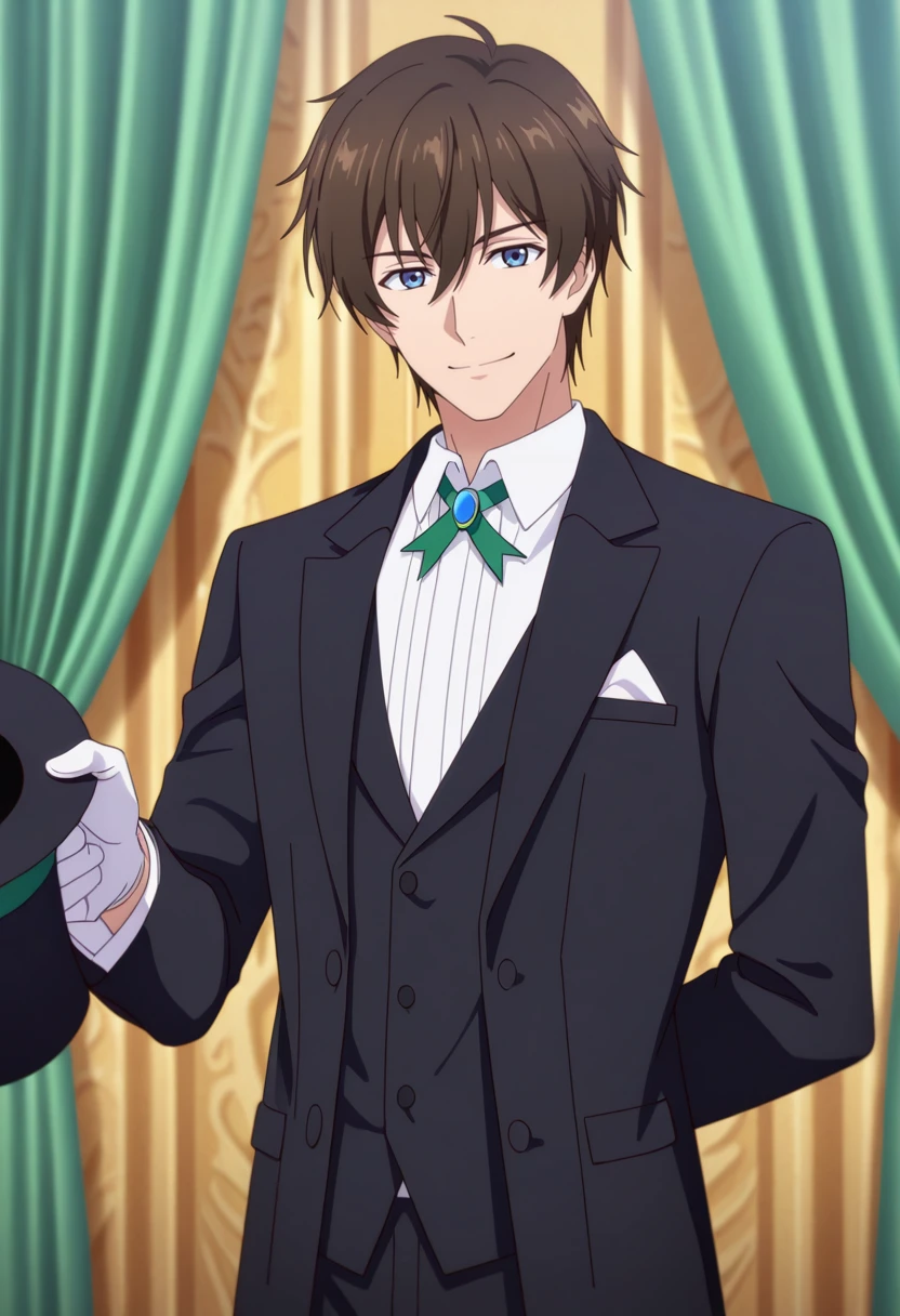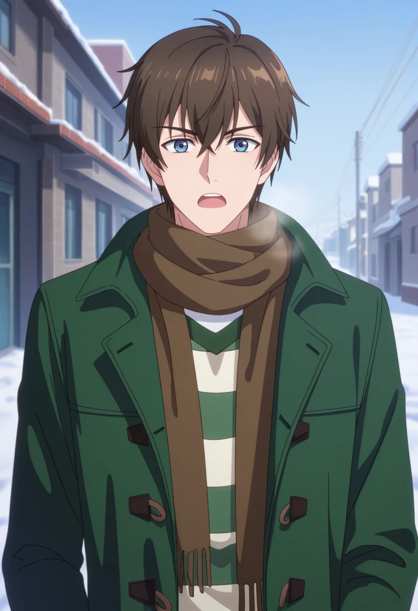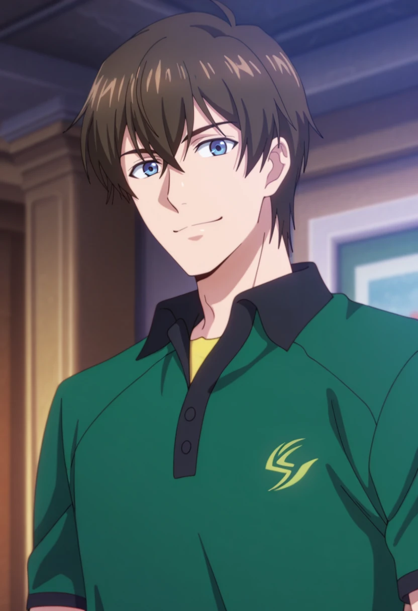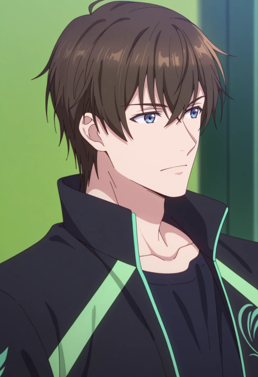 wang jiexi,brown hair,blue eyes,short hair,hair between eyes