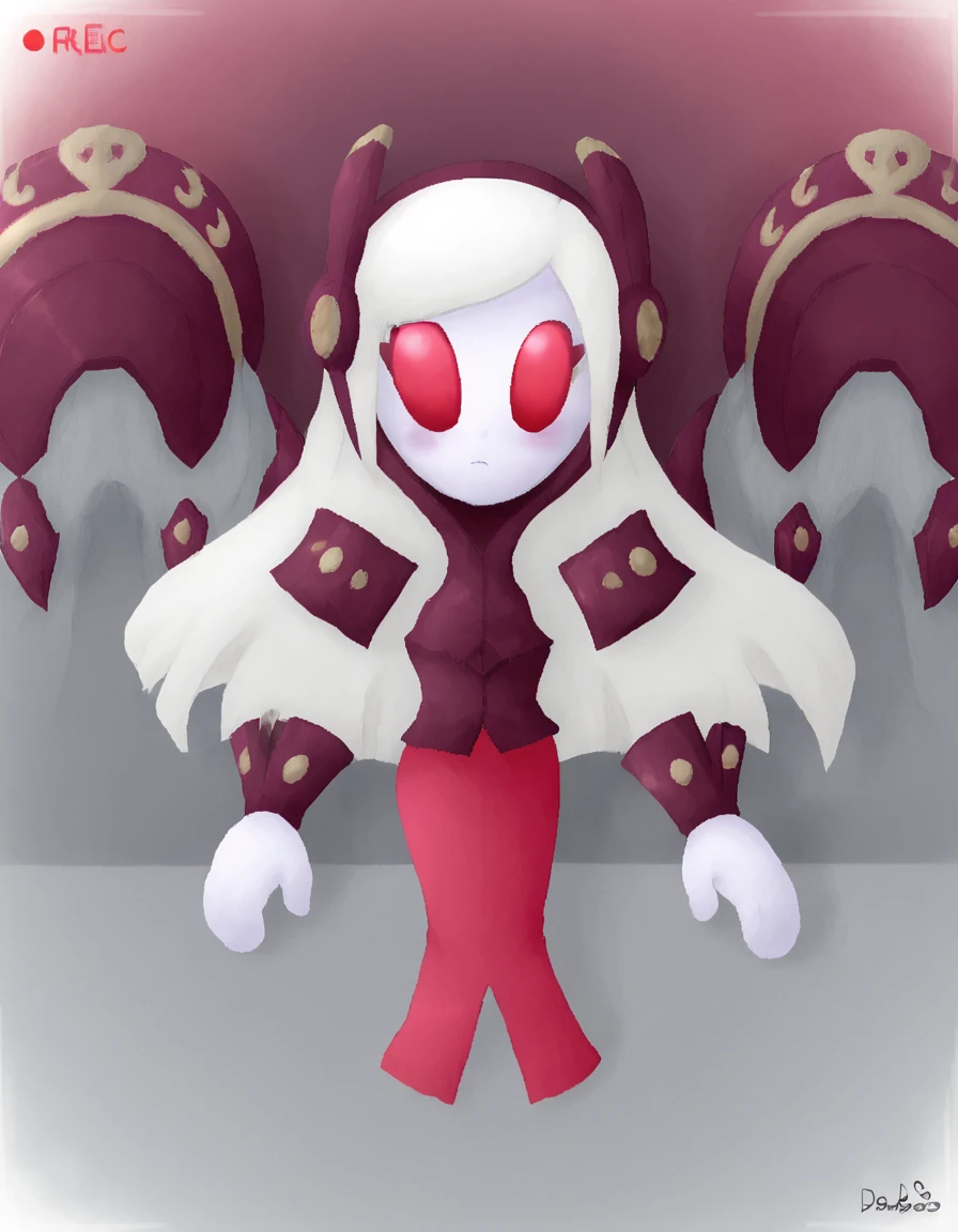 parasusiepres, solo, 1girl, red eyes, white hair, long hair, android, white skin, colored skin