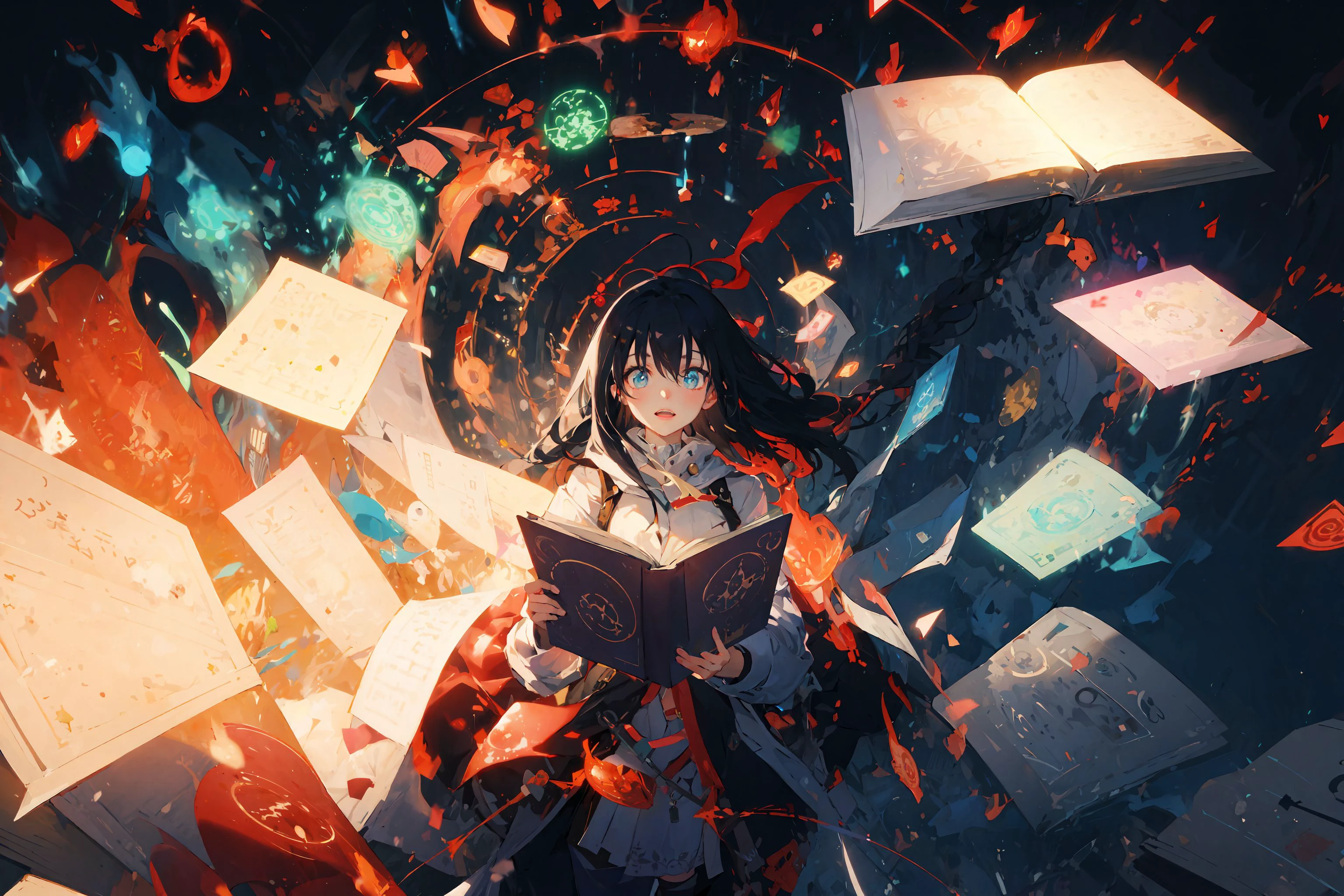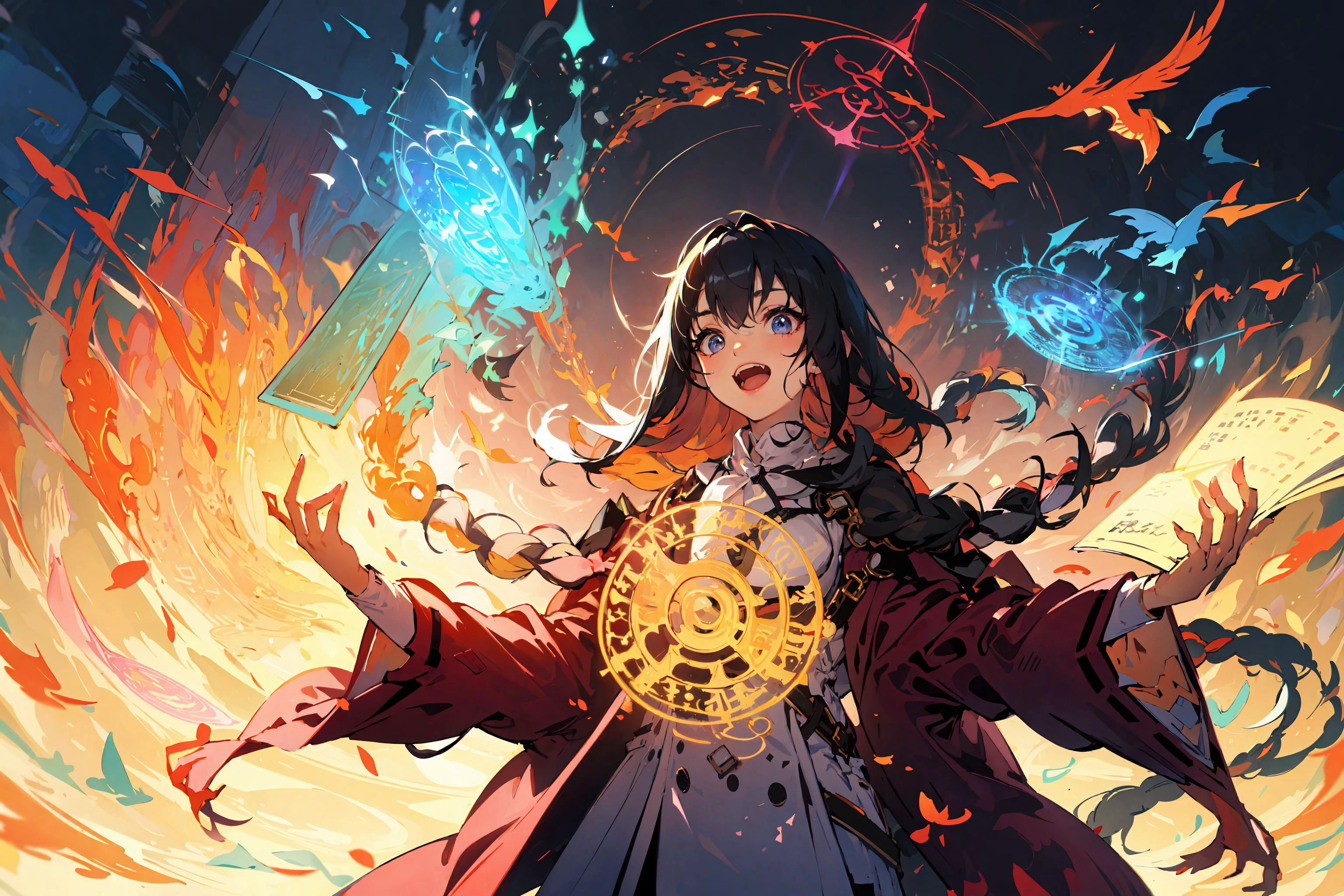 就是这种很绚丽的,魔法光环交织在一起的感觉,可以搭配其他角色lora一同使用,作为一种画风lora。
