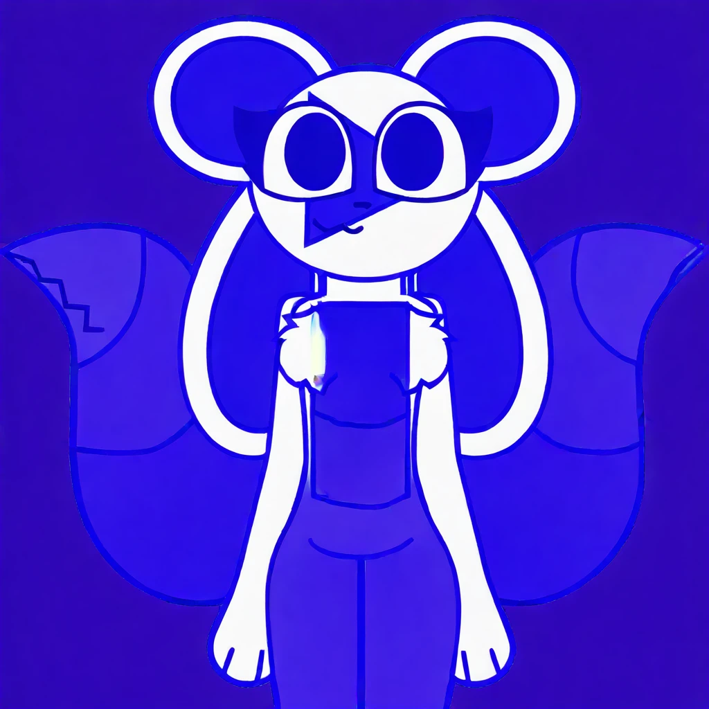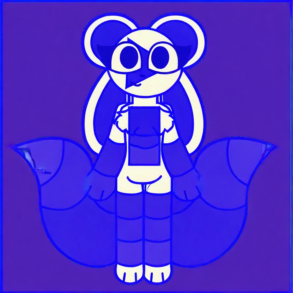 1girl, anthro, cartoony, furry, limbs, mouseydog, 2 arms, 2 legs, white fur, 4 ears, 1 tail, round ears, purple outline, purple tail, fluffy tail, tail maw, paw pads,