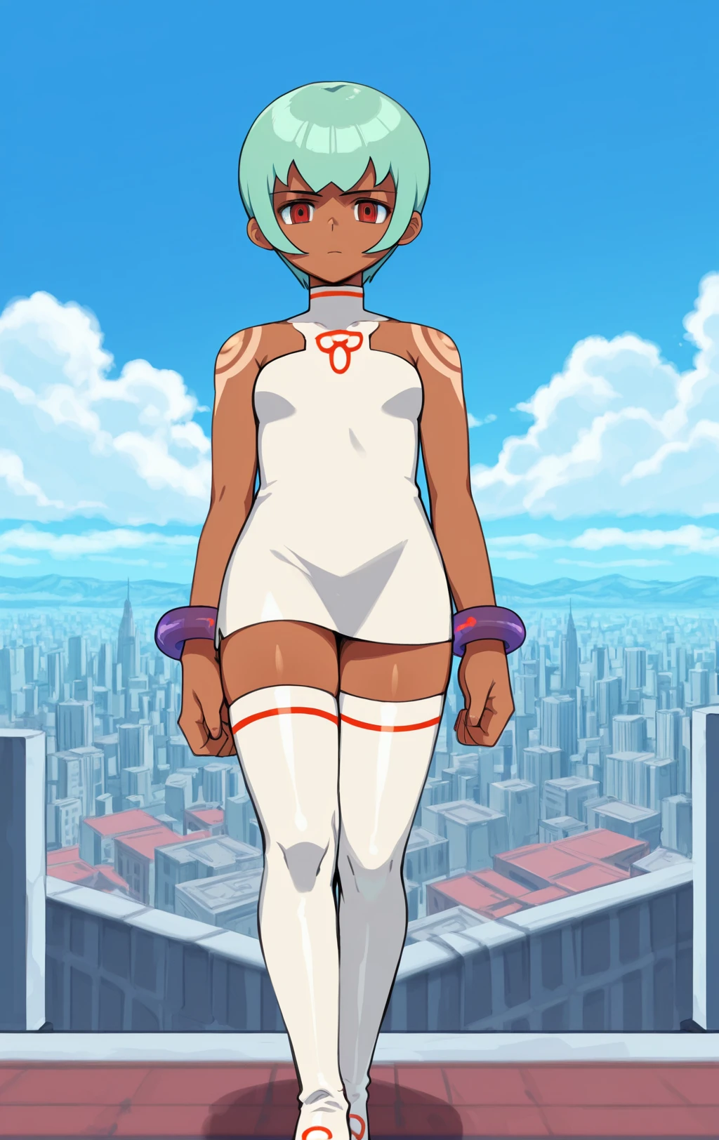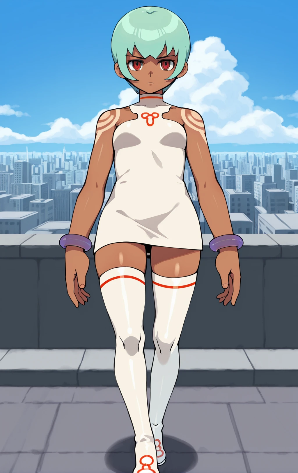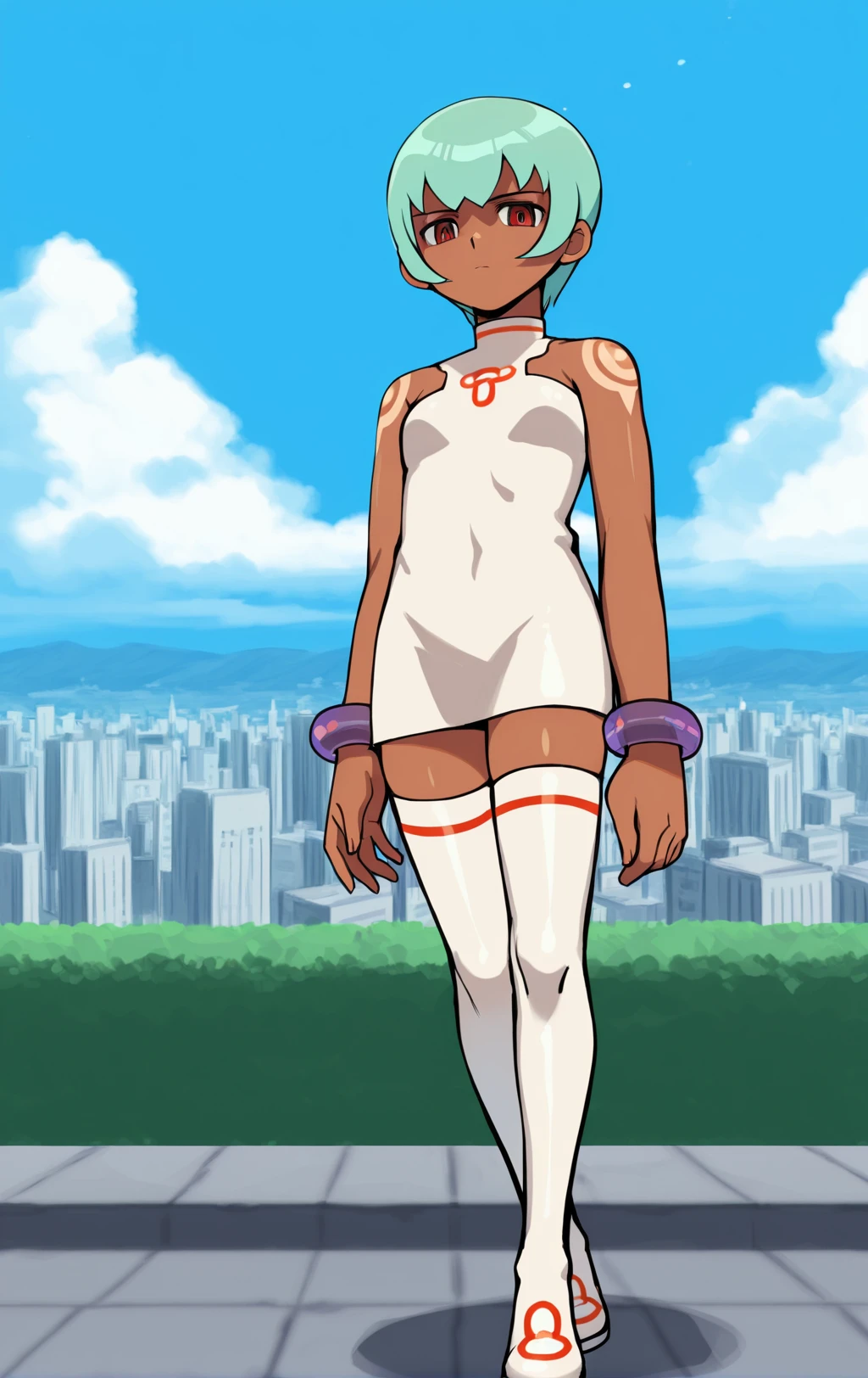 Her normal form is nearly flawless, but the symbol on her dress can sometimes remain if you attempt to change her outfit. This issue can be resolved by removing the tag “tattoo” from the prompt, as it seems that tag absorbed the symbol from her clothing rather than the shoulder tattoos for some reason.