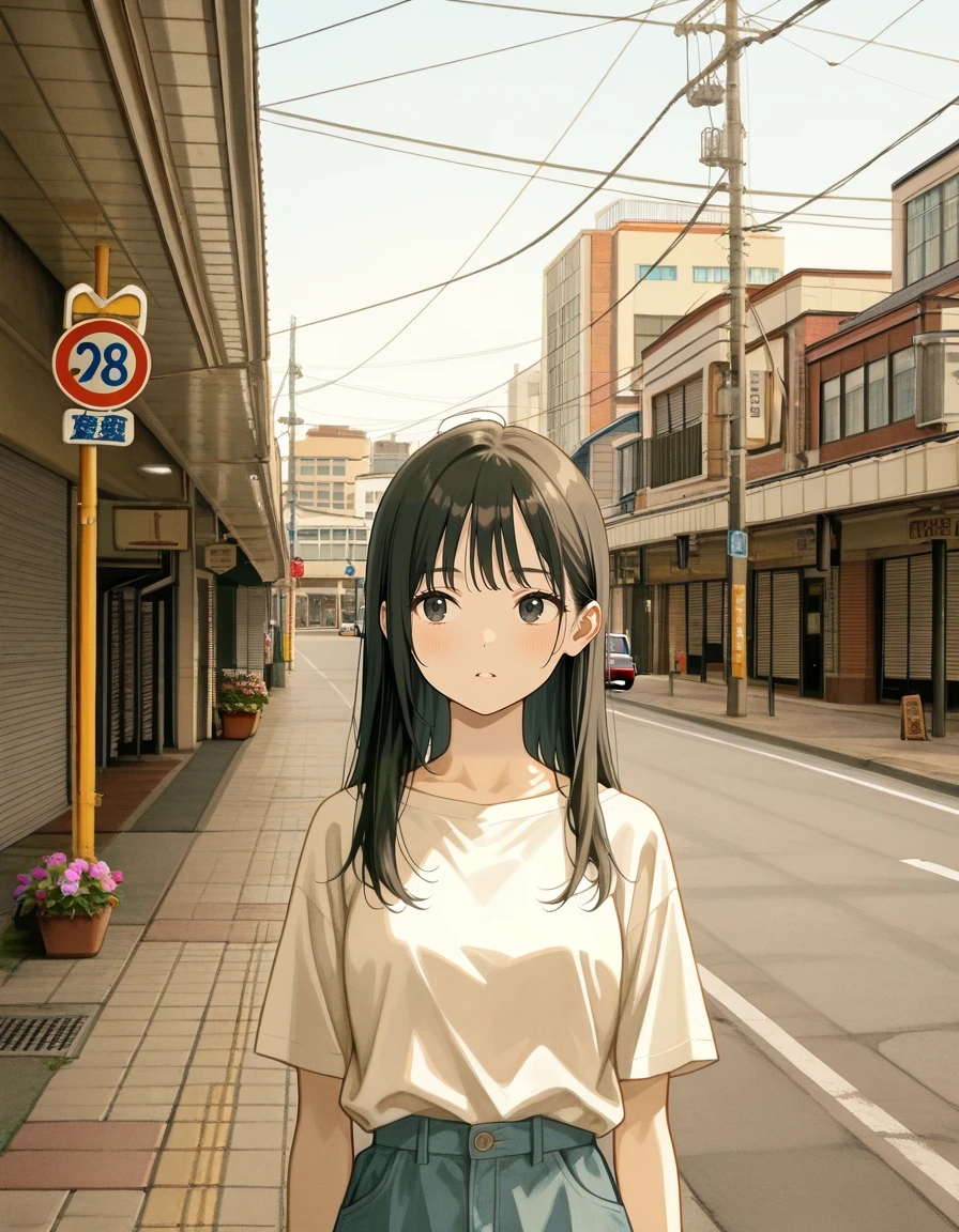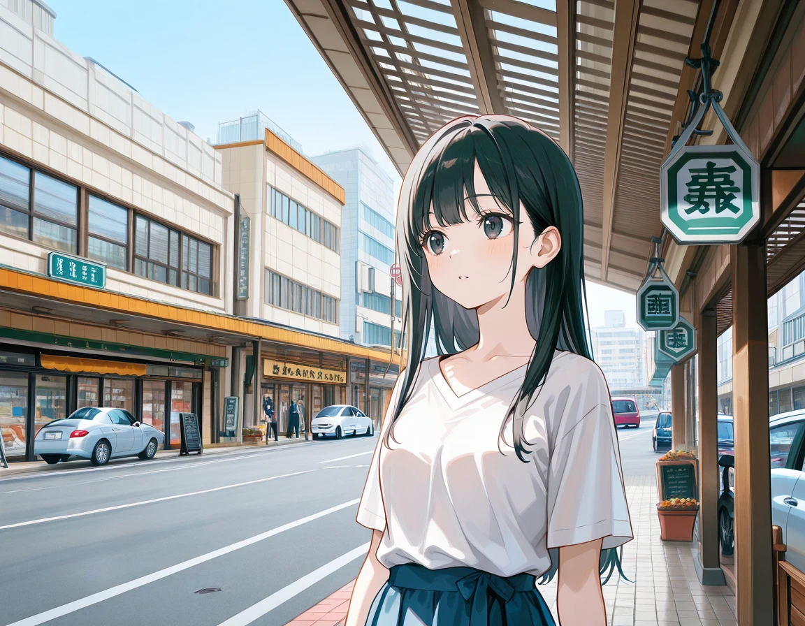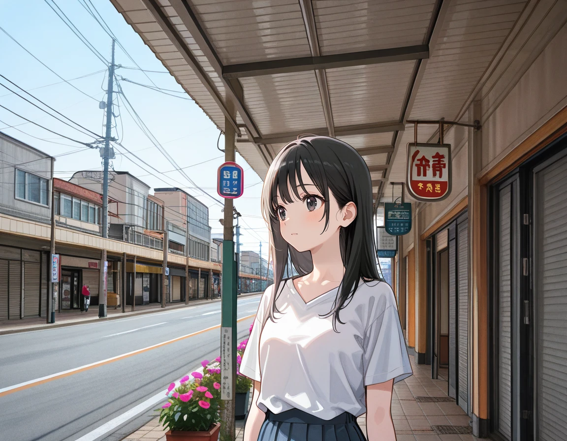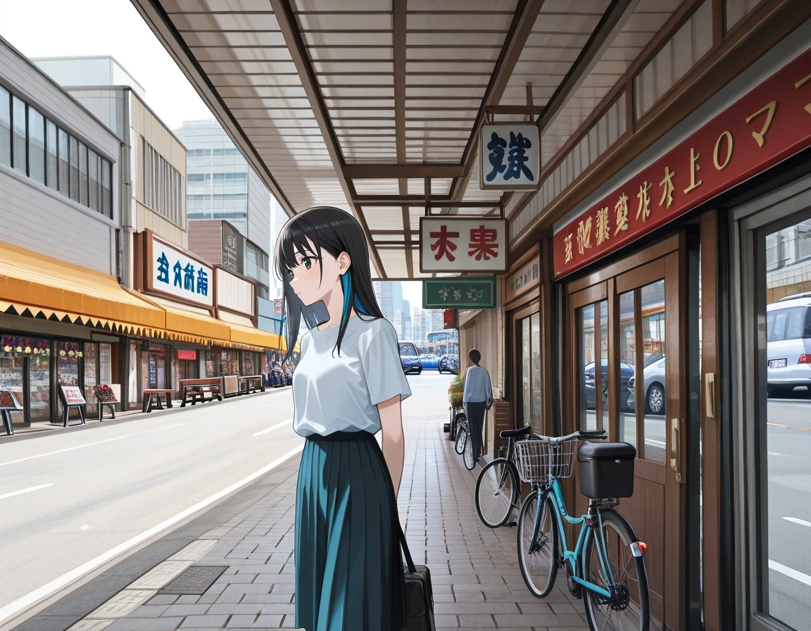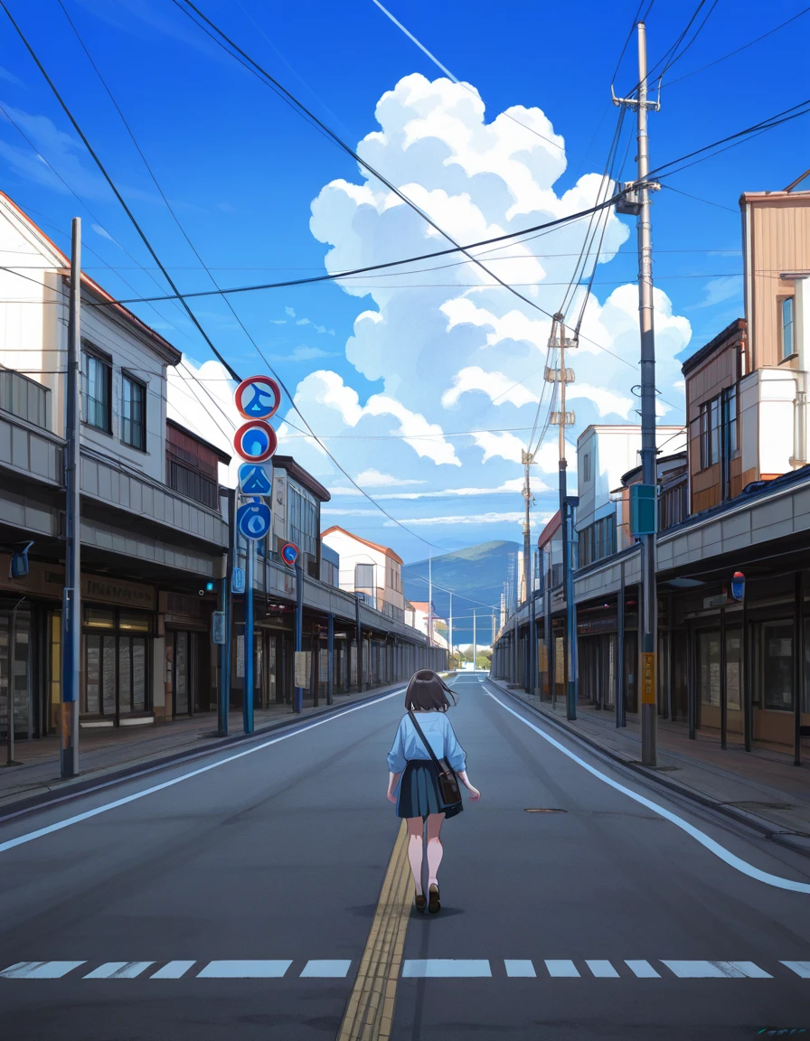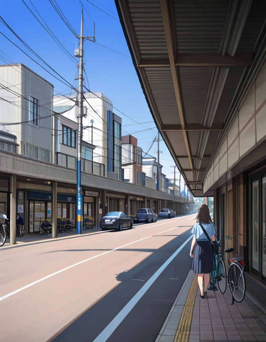 プロンプトに city を加えれば栄えた駅前に、city を抜いて shutter を加えることで寂れた田舎の駅前商店街になります。