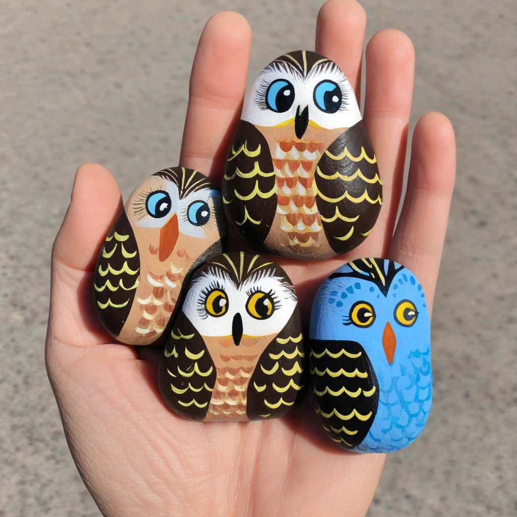 Creates a realistic close-up picture of one or more beautifully painted stones like the Happy Stones you can find in the wild.