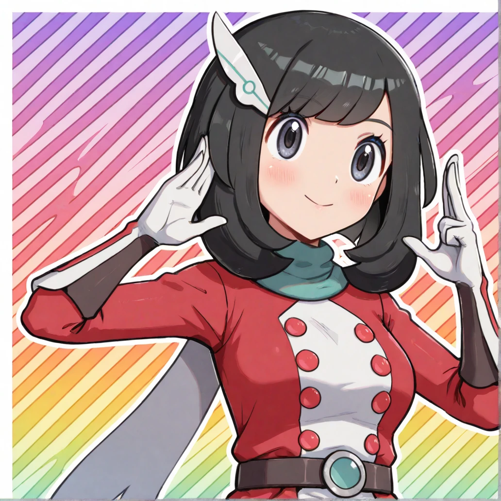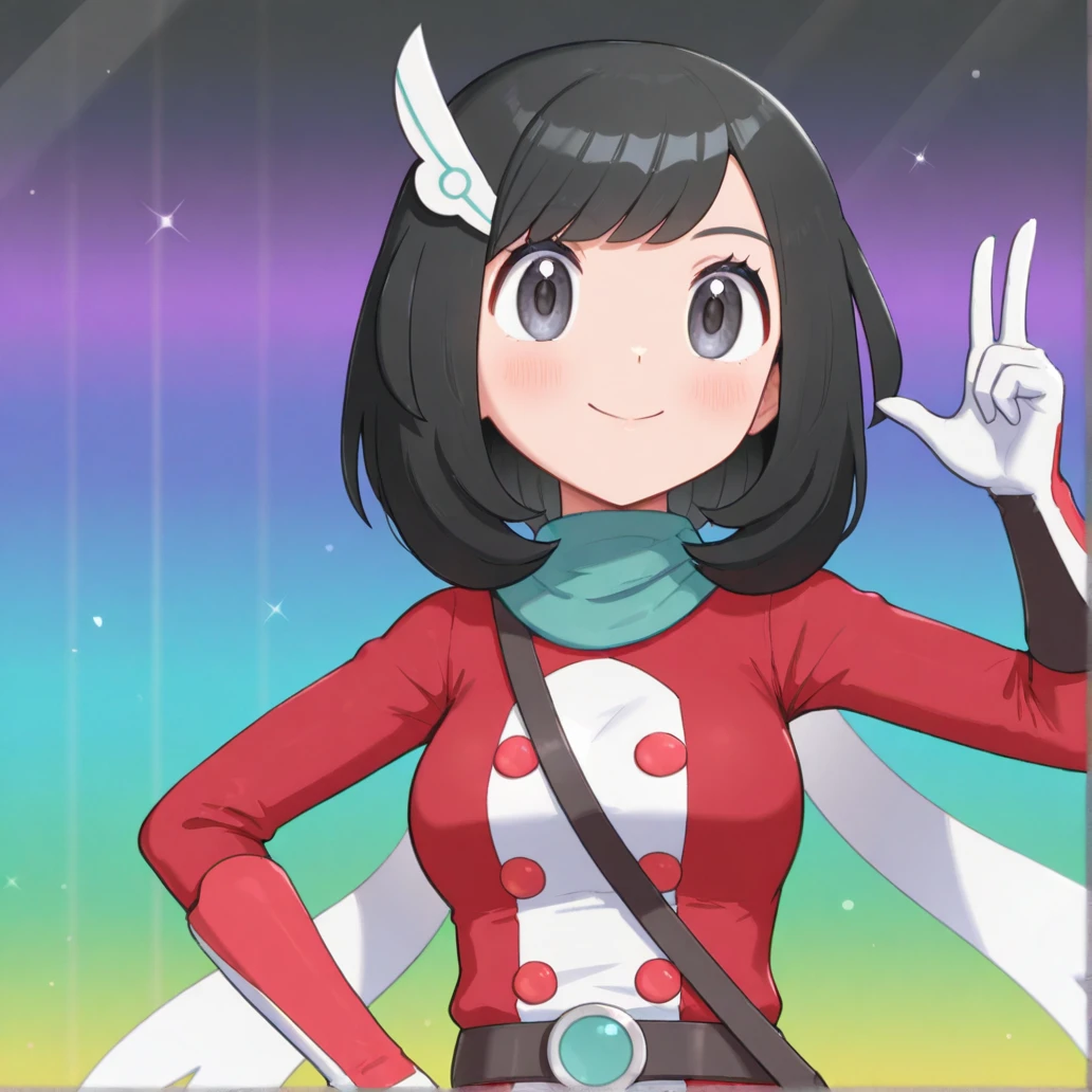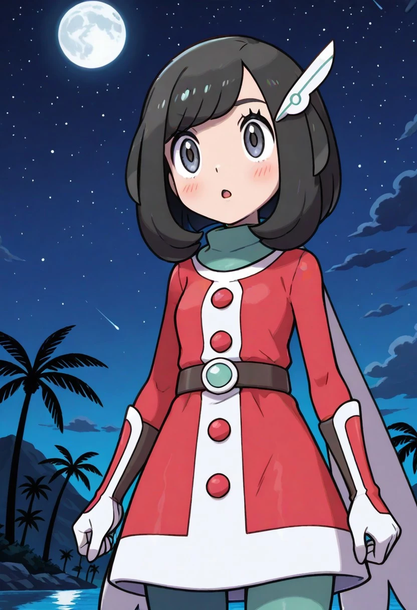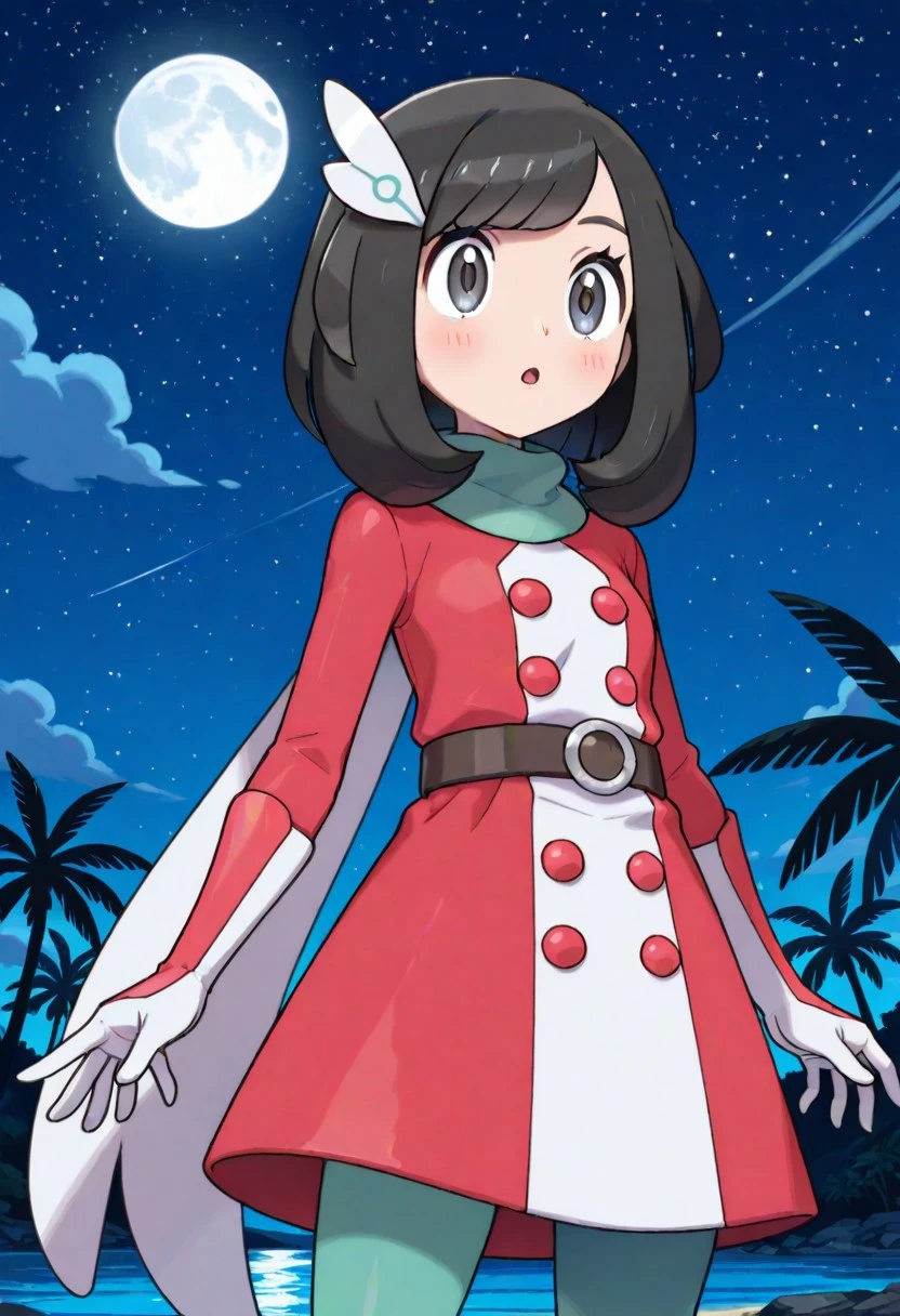 scselene, selene \(pokemon\), grey eyes, black hair, bangs, medium hair