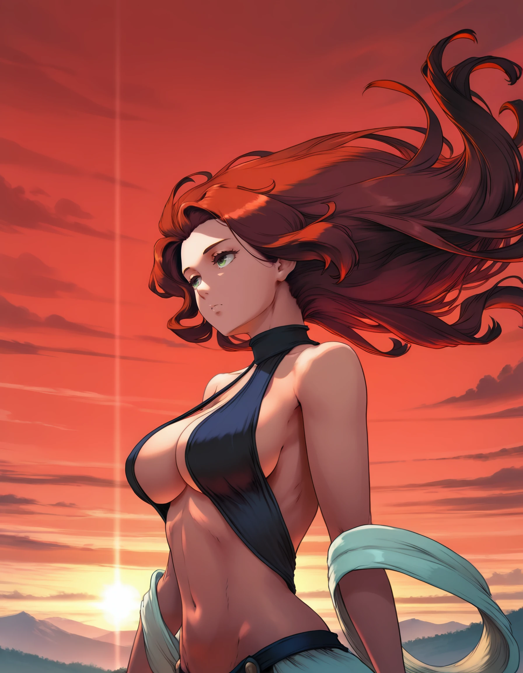 • esche, long_hair, red_hair, brown_hair, green_eyes