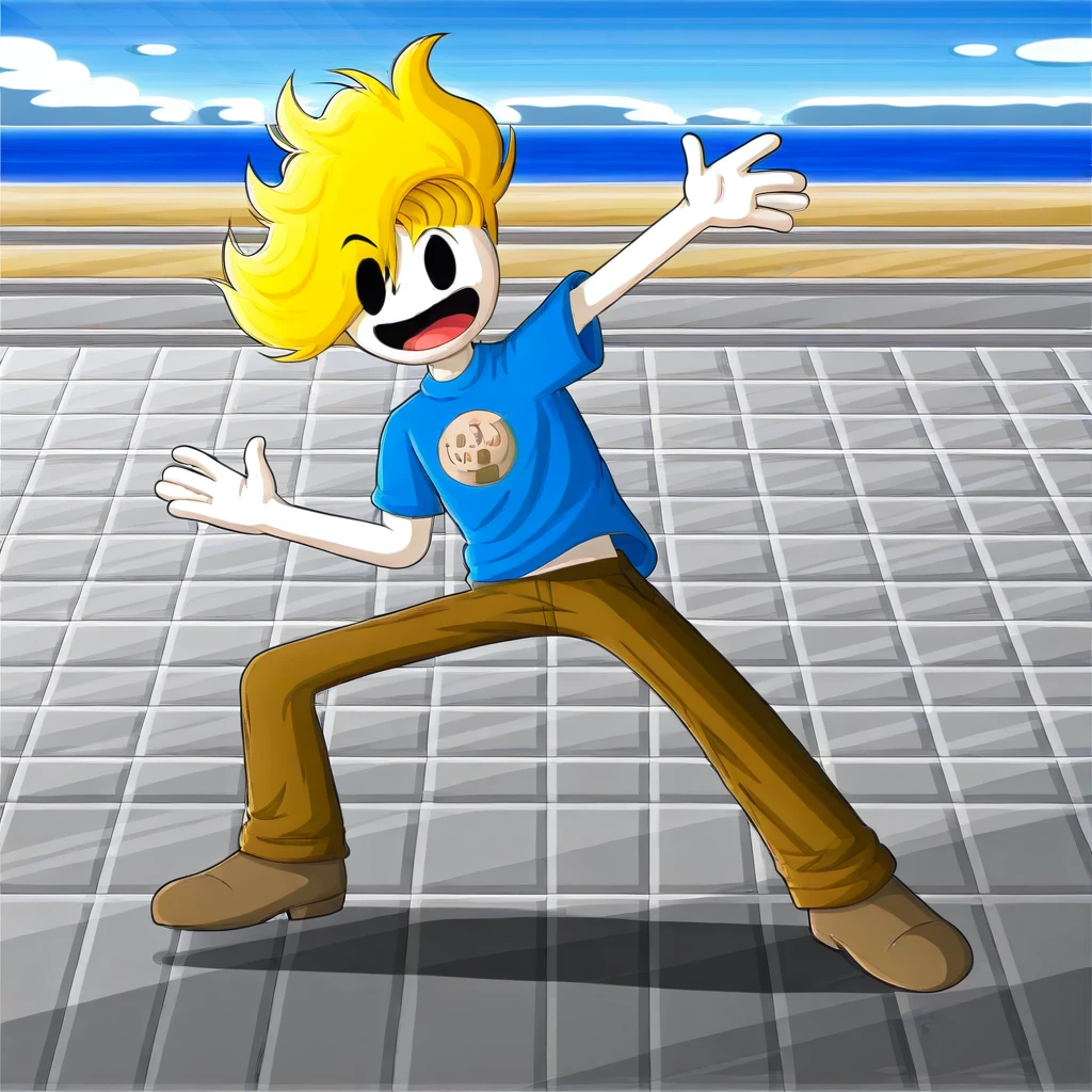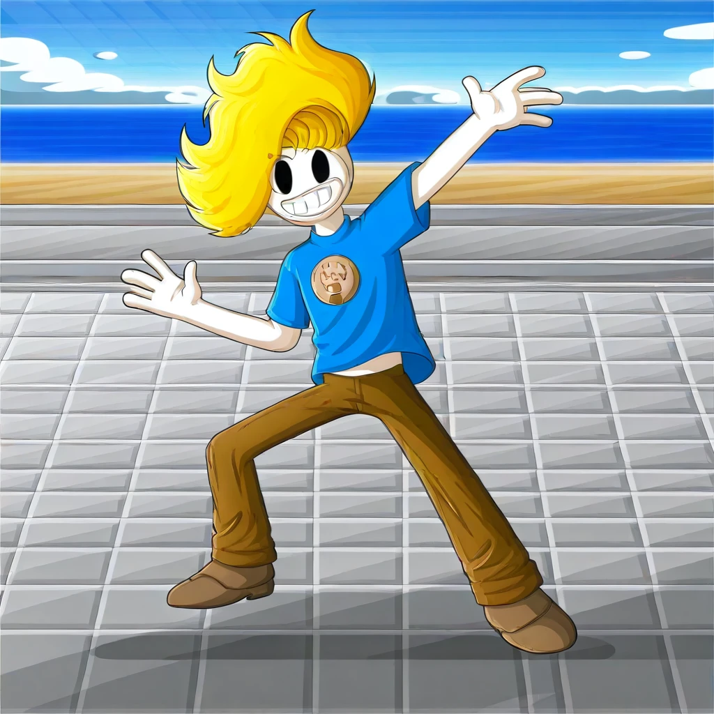Bryson_(Haminations), 1boy, solo, blonde hair, black eyes, white skin, male focus
