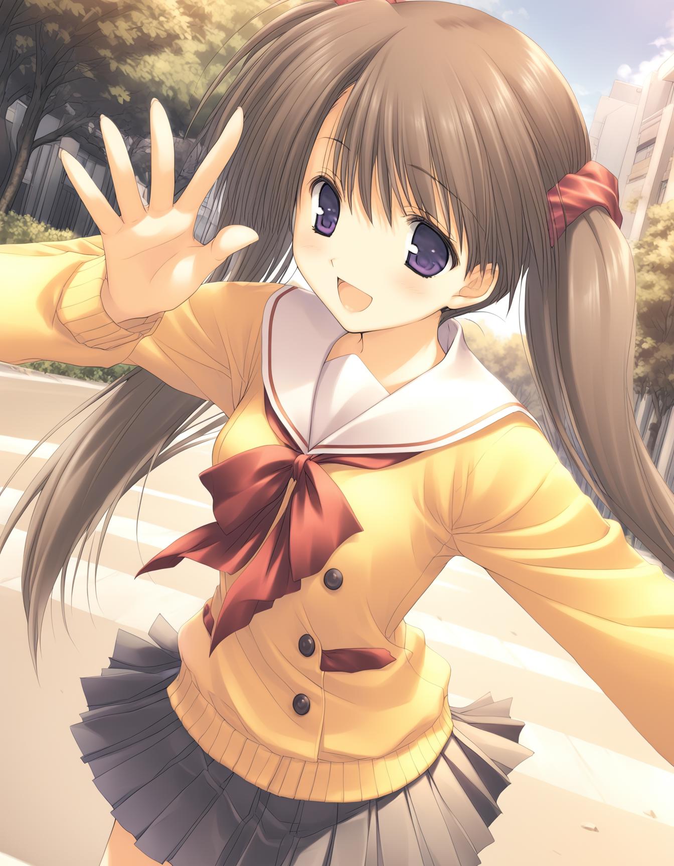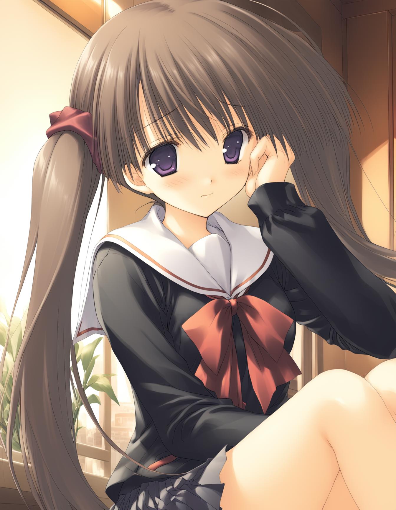 tenshinoinai12, sumadera yukio, twintails, long hair, ribbon, brown hair,purple eyes, blue eyes,