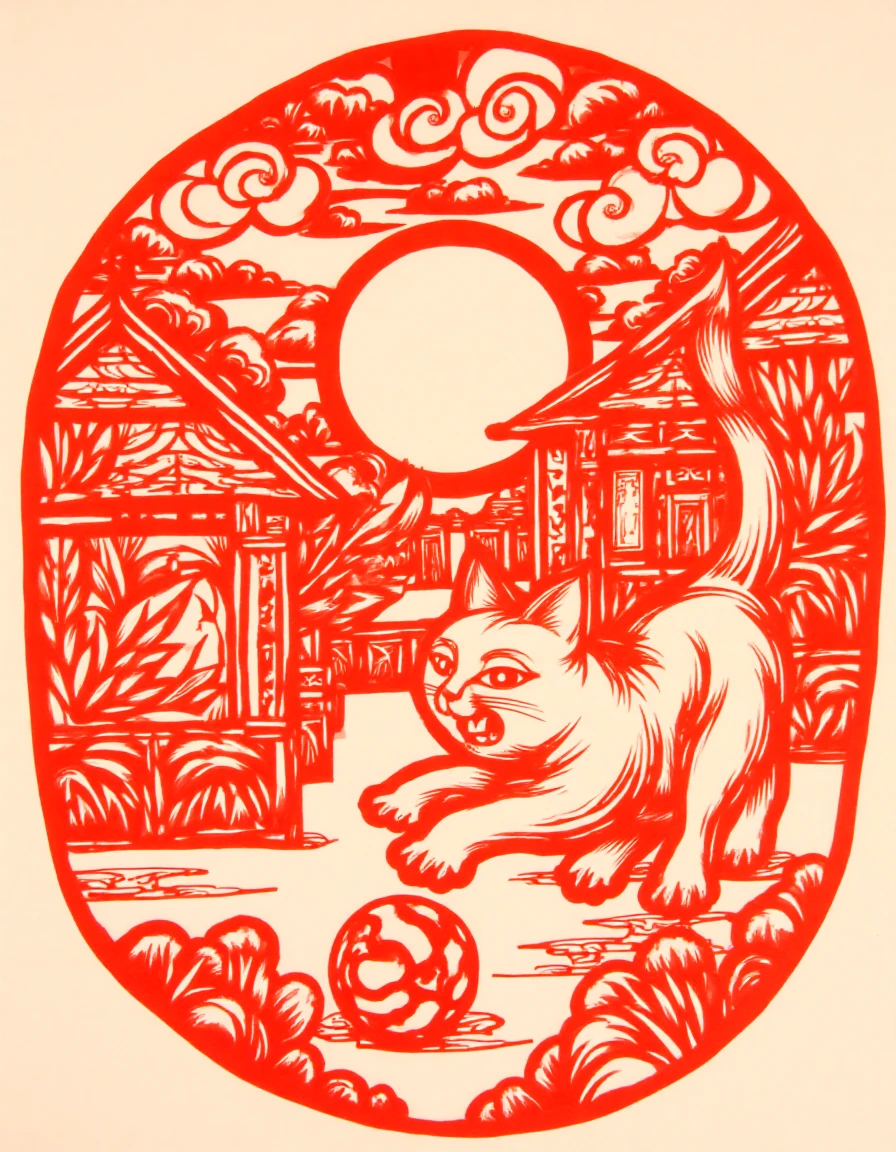 生成效果:该LoRA能够生成具有强烈中国风剪纸艺术特色的图像,作品边缘清晰,造型简洁而生动,表现出浓厚的民间艺术氛围。